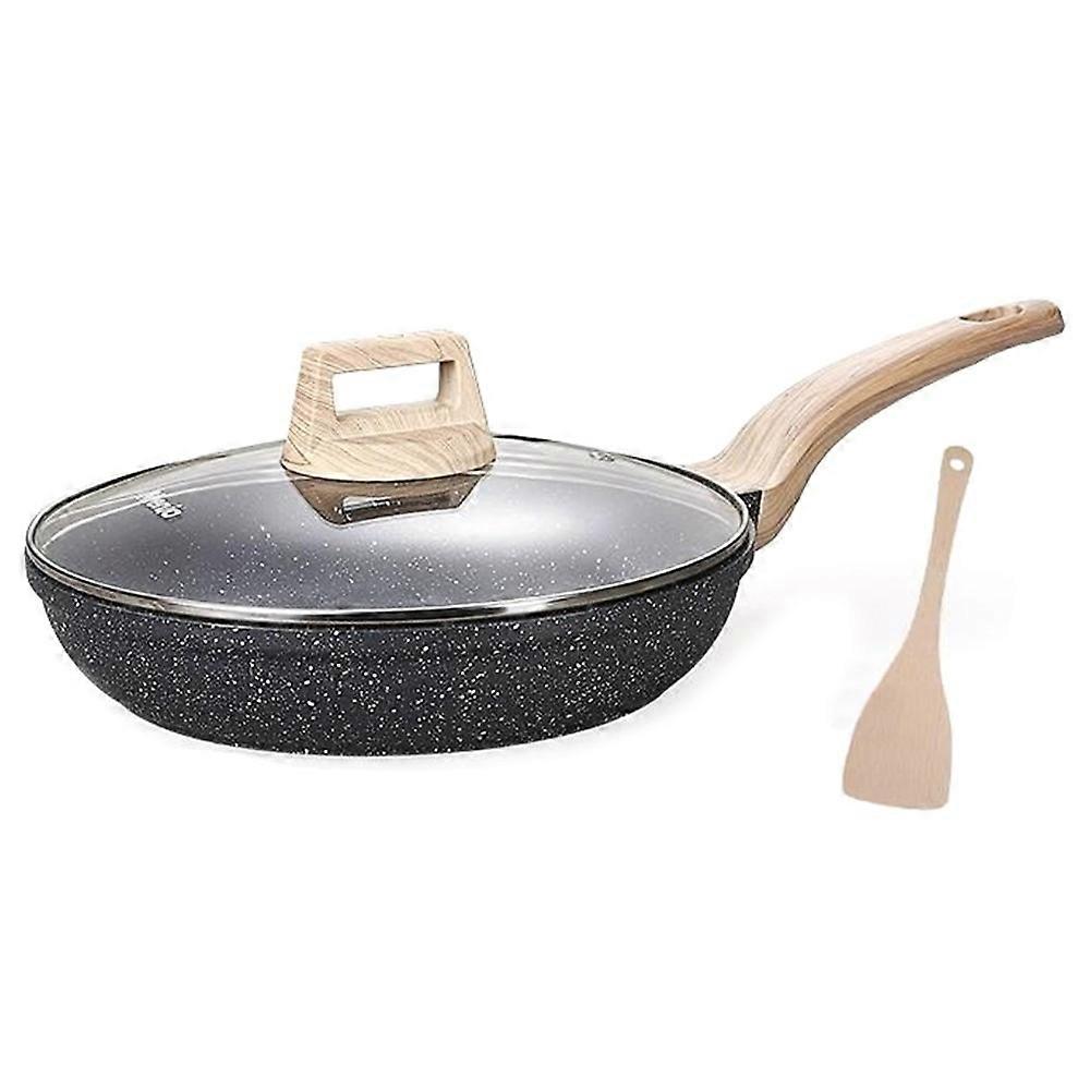 MENJO Maifanite Frying Pan 28cm Non Stick Skillet with Lid / Spatula for Home Cooking