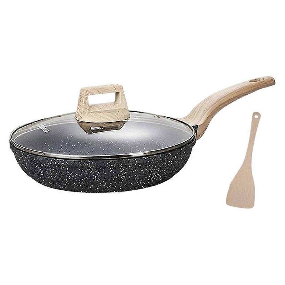 MENJO Maifanite Frying Pan 24cm Non Stick Skillet with Lid / Spatula for Home Cooking