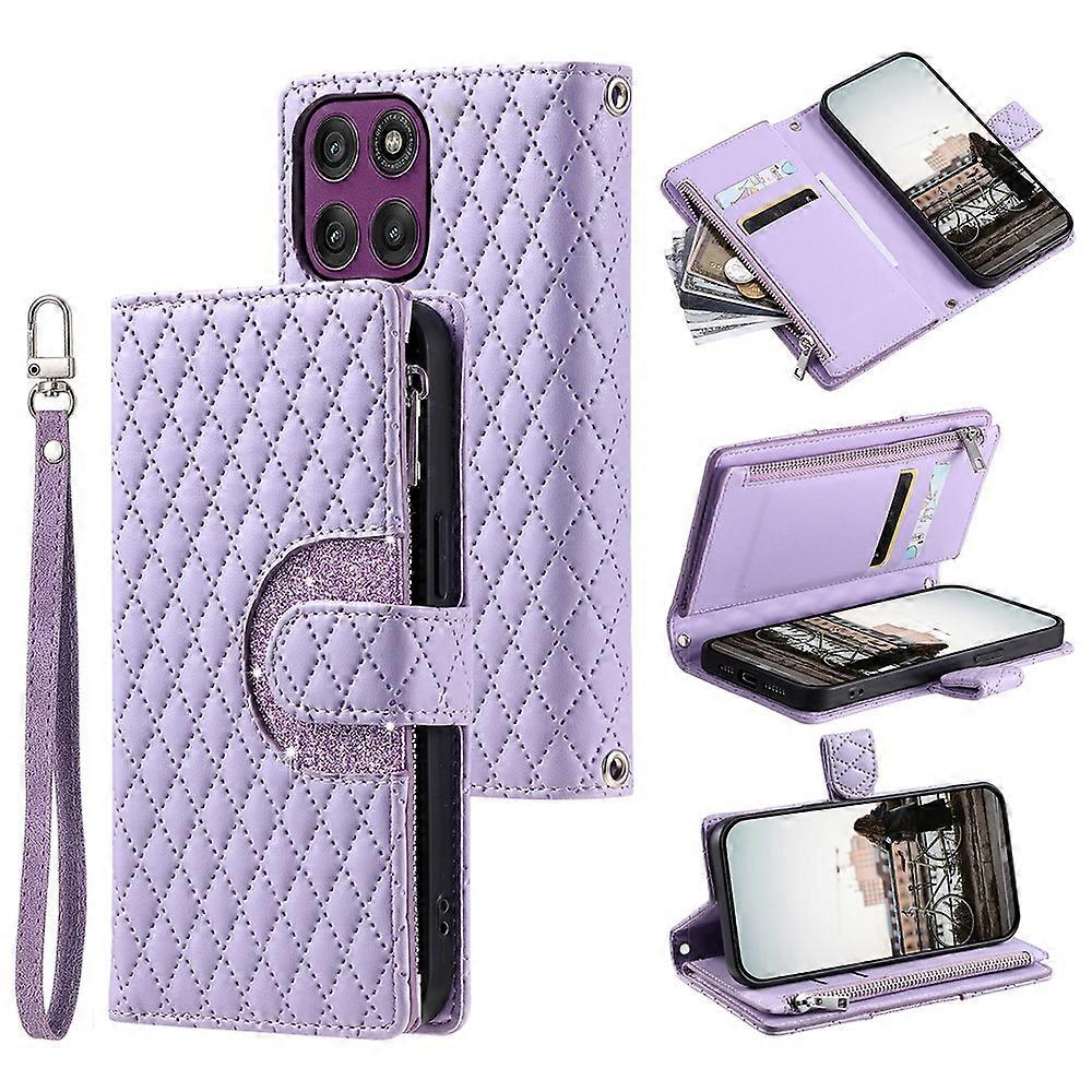 Compatible For Motorola Moto G86 Power 5G Case Zipper Pocket Glitter Leather Phone Cover with Wrist Strap