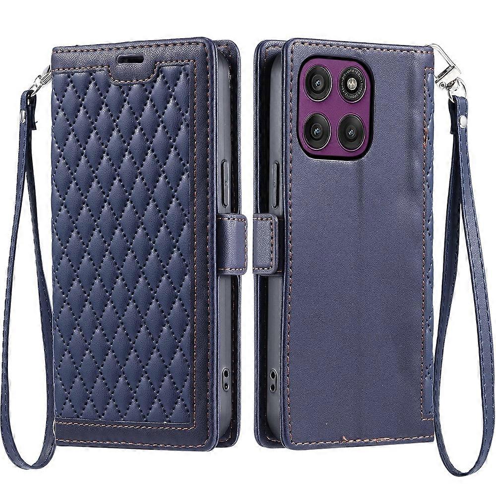 Compatible For Motorola Moto G67 Power 5G Leather Case Rhombus Texture Wallet Stand Phone Cover with Wrist Strap