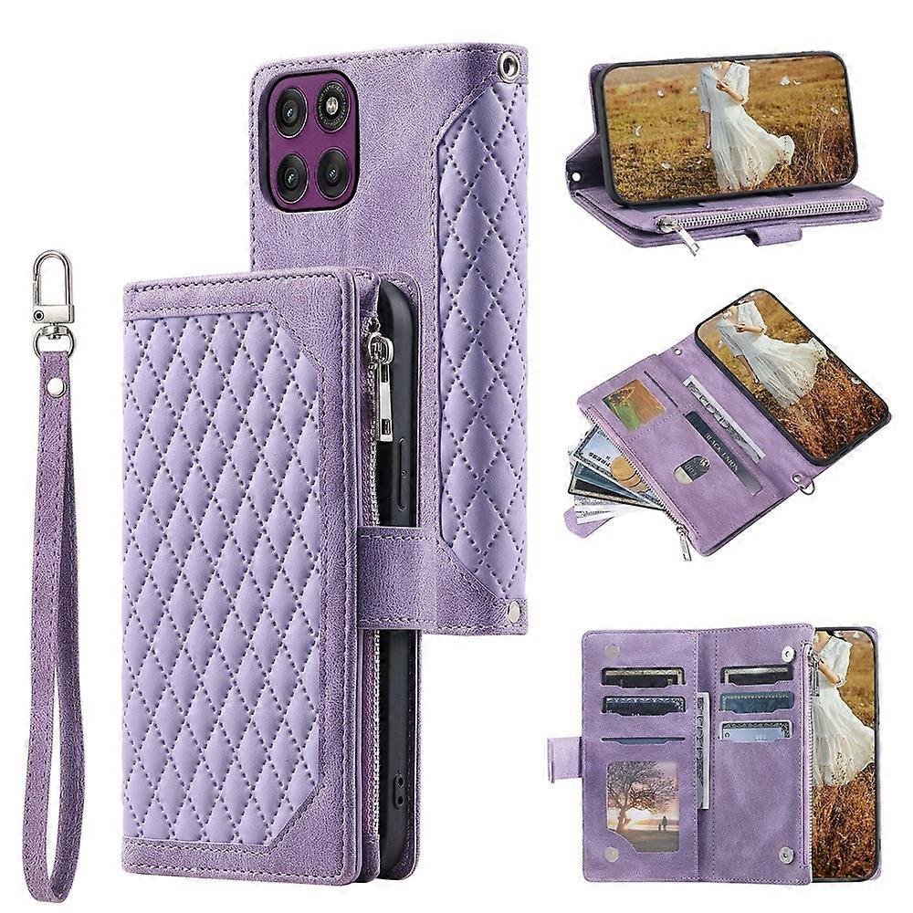 Compatible For Motorola Moto G67 Power 5G Wallet Case Rhombus Stitching Line PU Leather Phone Cover with Wrist Strap