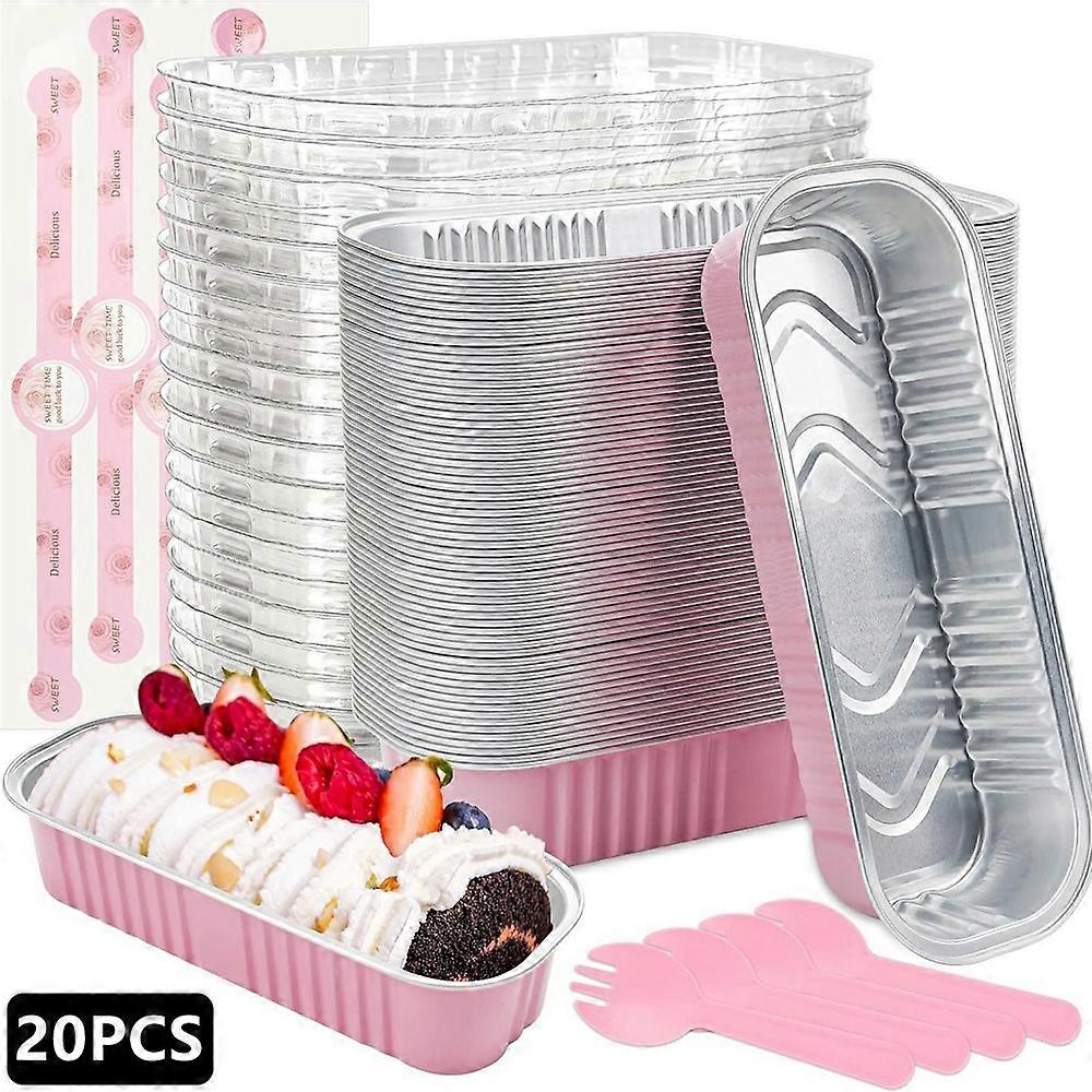 20Pcs / Set Aluminum Foil Loaf Pans with Transparent Lid Plastic Spoon and Sticker Kitchen Mini Bread Baking Pans (BPA Free, No FD