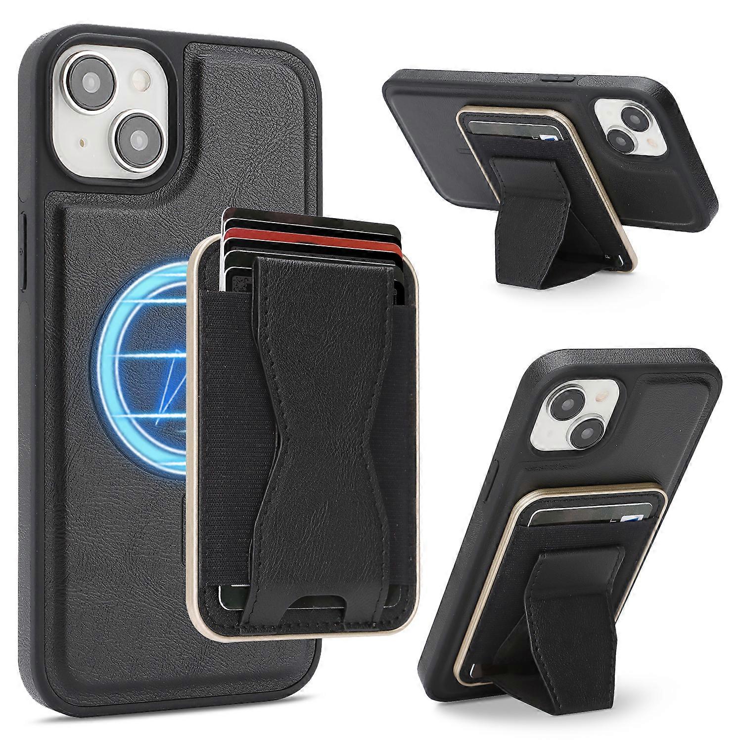 Compatible For iPhone 15 Case Compatible with MagSafe Leather Back Phone Cover with Detachable Card Holder Kickstand