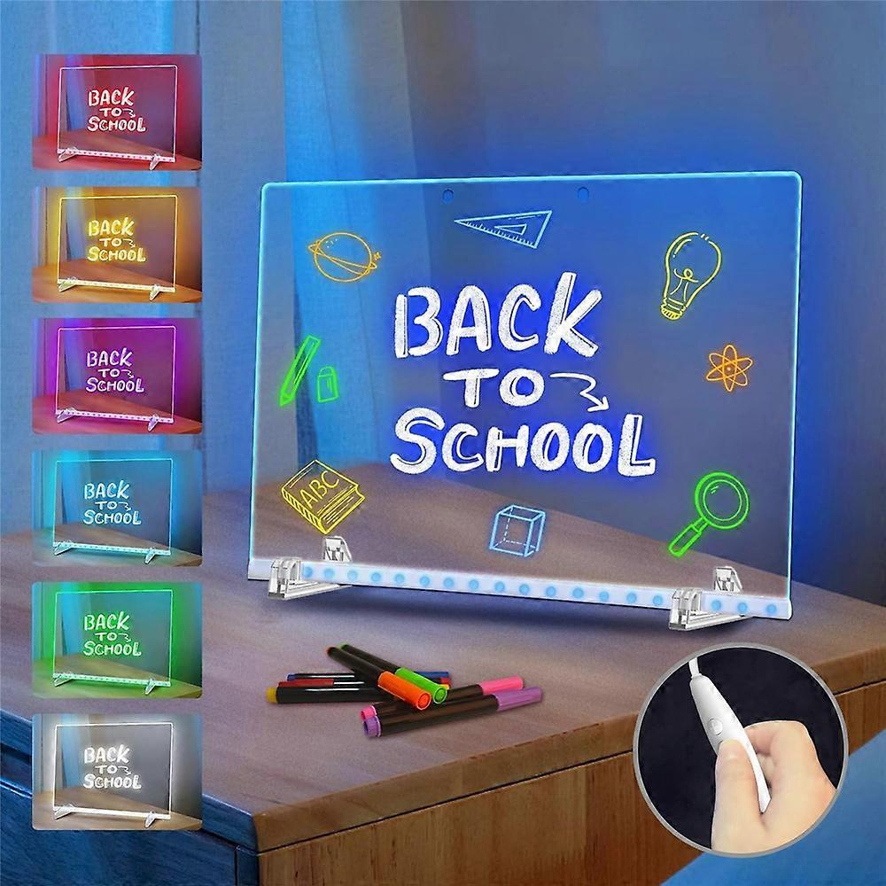 40 x 30cm For Kids RGB Light DIY Drawing Board with Button Control Erasable Acrylic Writing Blackboard Gift