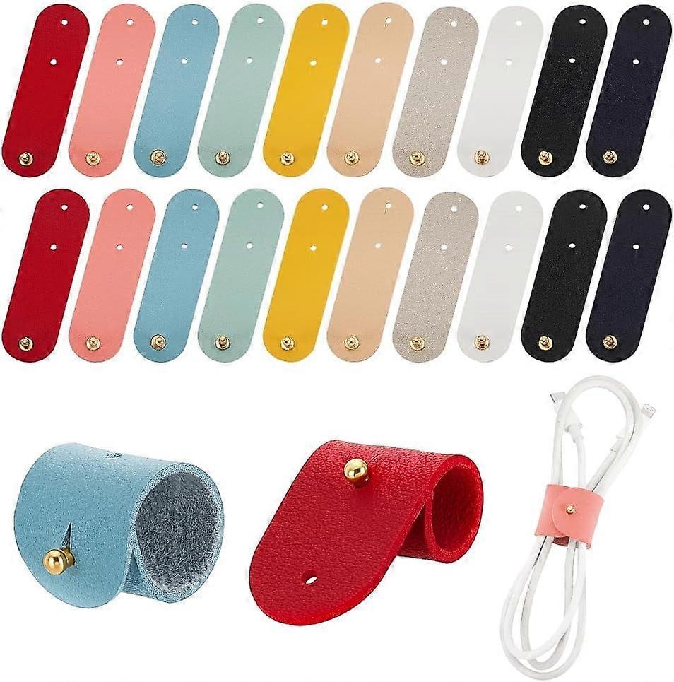 20Pcs Leather Cord Organizer, 10 Colors Reusable Cable Straps Compatible with Earphones, Travel Home Office Use