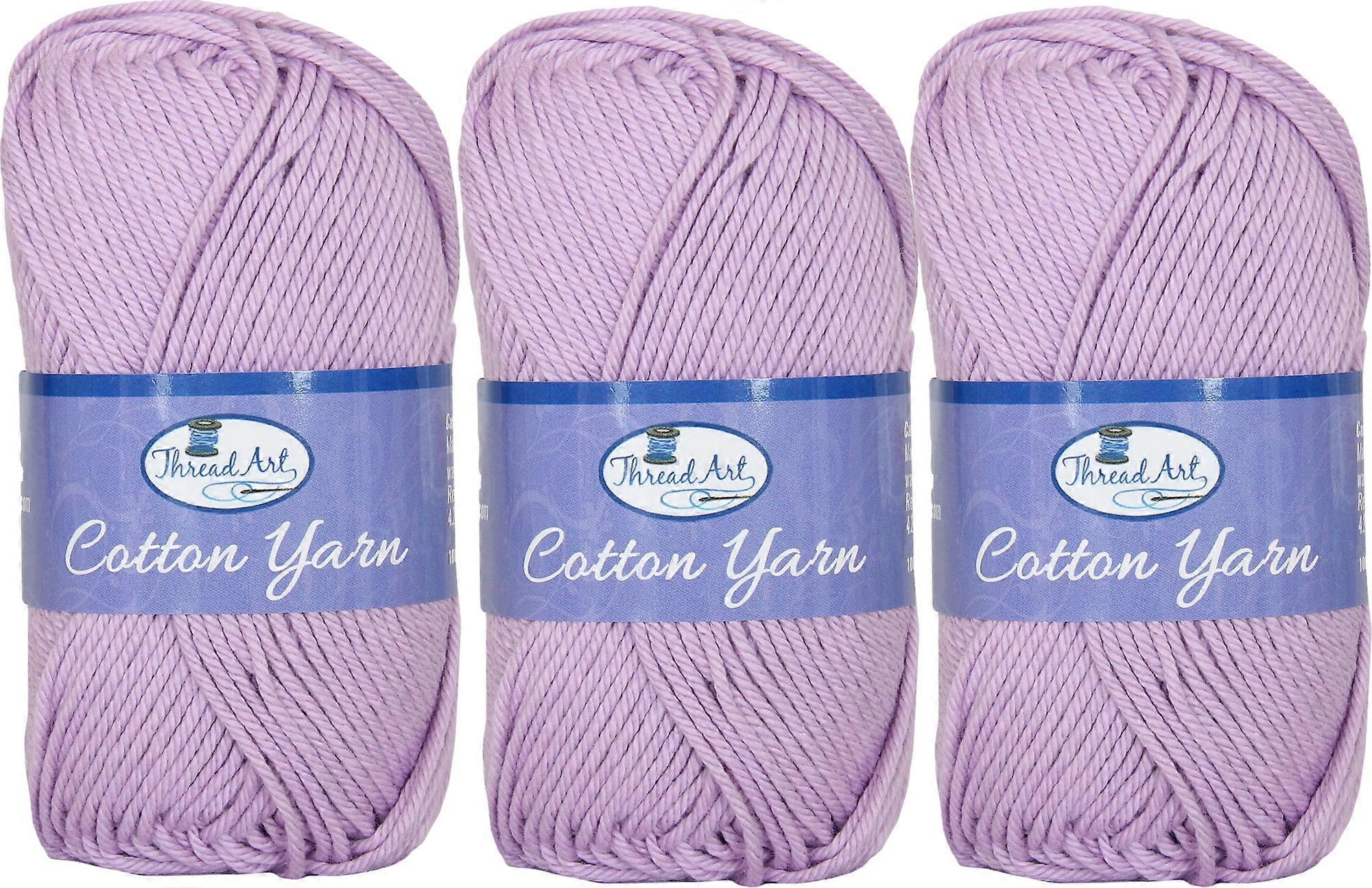 3 Pack of 100% Pure Cotton Crochet Yarn by Threadart | Lavender | 50 gram Skeins | Worsted Medium #4 Yarn | 85 yds per Skein - 30 Colors Available