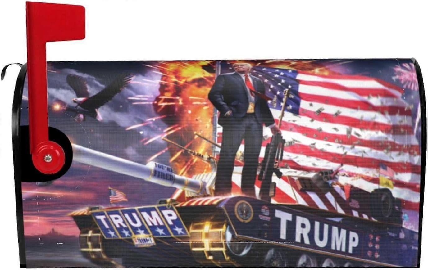 American President Tr-u-m-p On T-an-k Flag Premium Magnetic Mailbox Covers Durable Stylish Mailbox Wraps Garden Yard Home Standard Mailbox 21x18 in