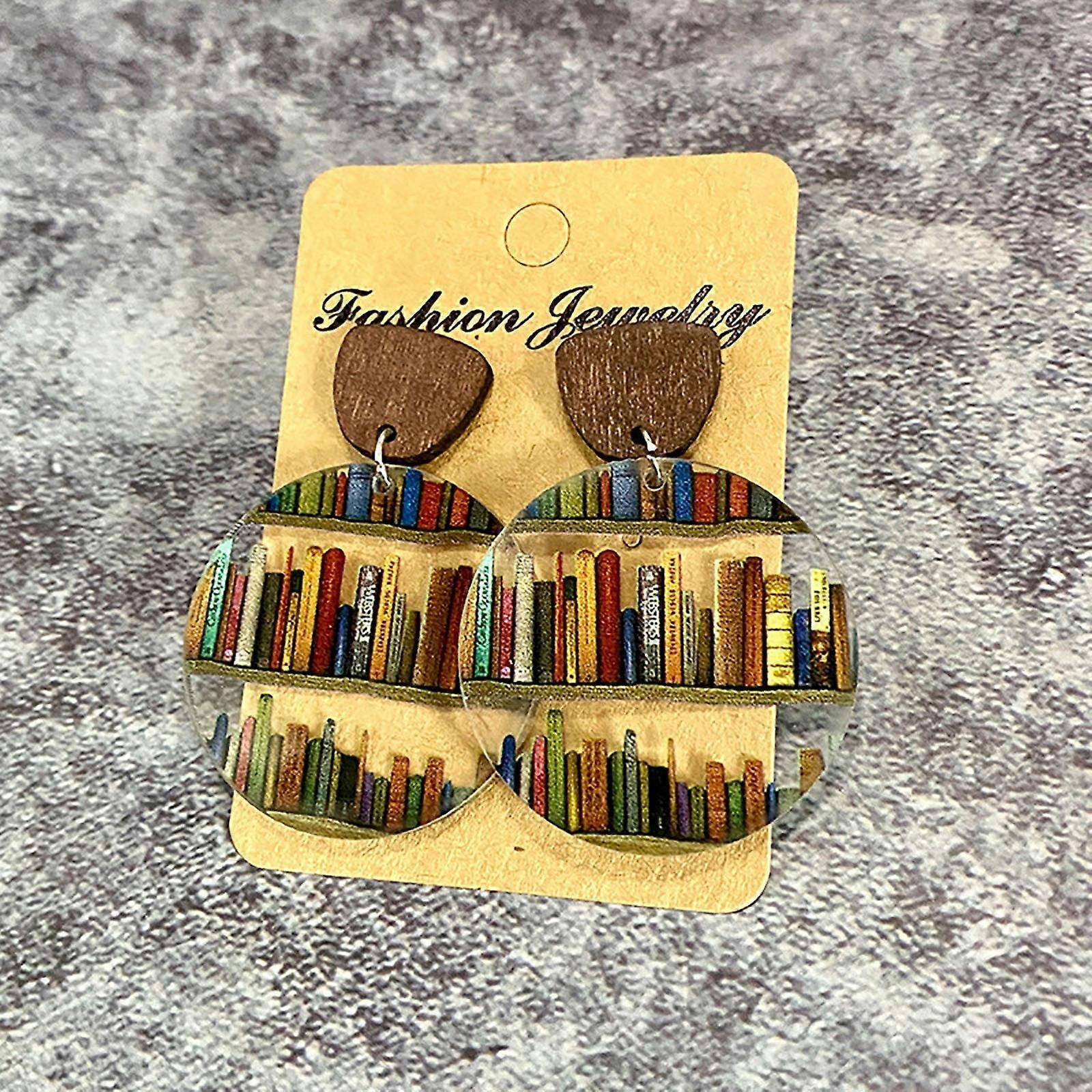 Valentines Day Gifts Savings Deals! WJSXC Book Lover Earrings, Classic Water Drop Round Square Stitching Bookcase Teacher Earrings B
