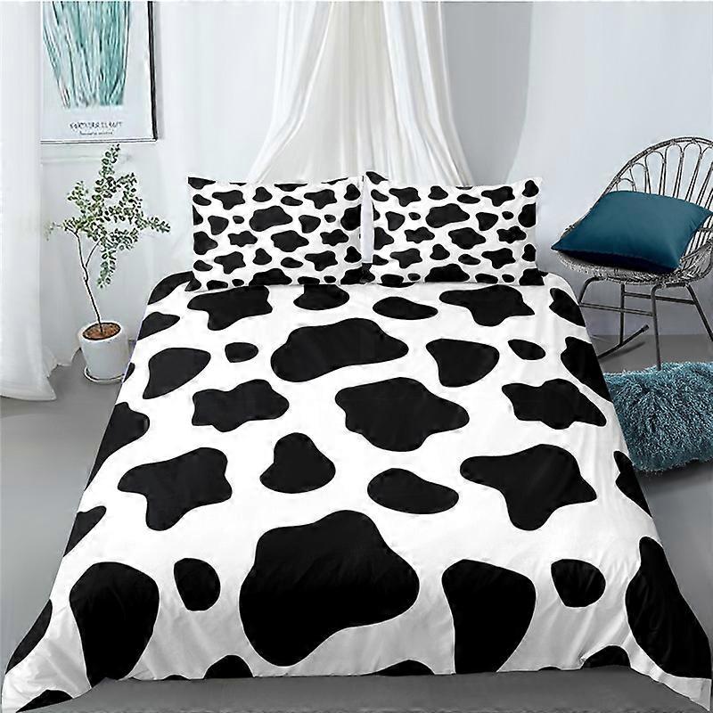 8-Queen Duvet Cover Set, 3 Pieces Ultra Soft Cow Printed Comforter Cover Set With Zipper Closure and, Black White Pink