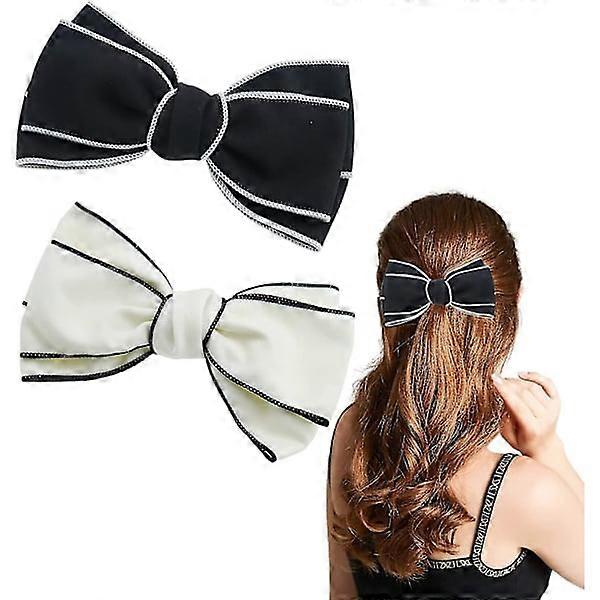 2-pack elegant bow hair clips solid color large black and white hair bow hair clip hair accessories