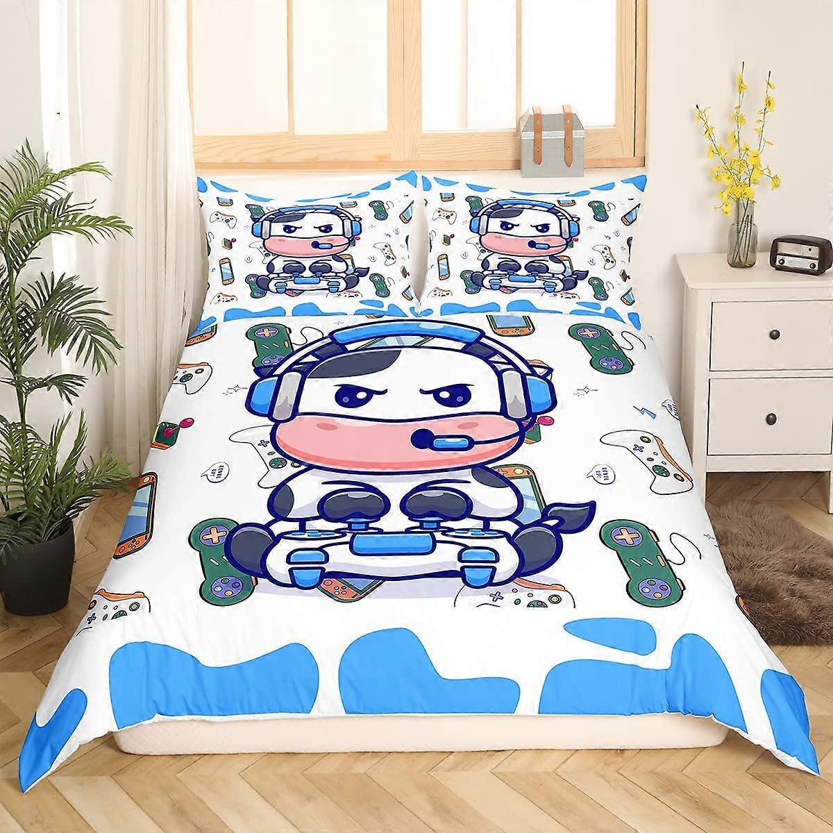19-Milk Cow Orange Pattern King Queen Duvet Cover Cartoon Fruit Animal Bedding Set For Kids Girl White 2/3pcs Quilt Cover