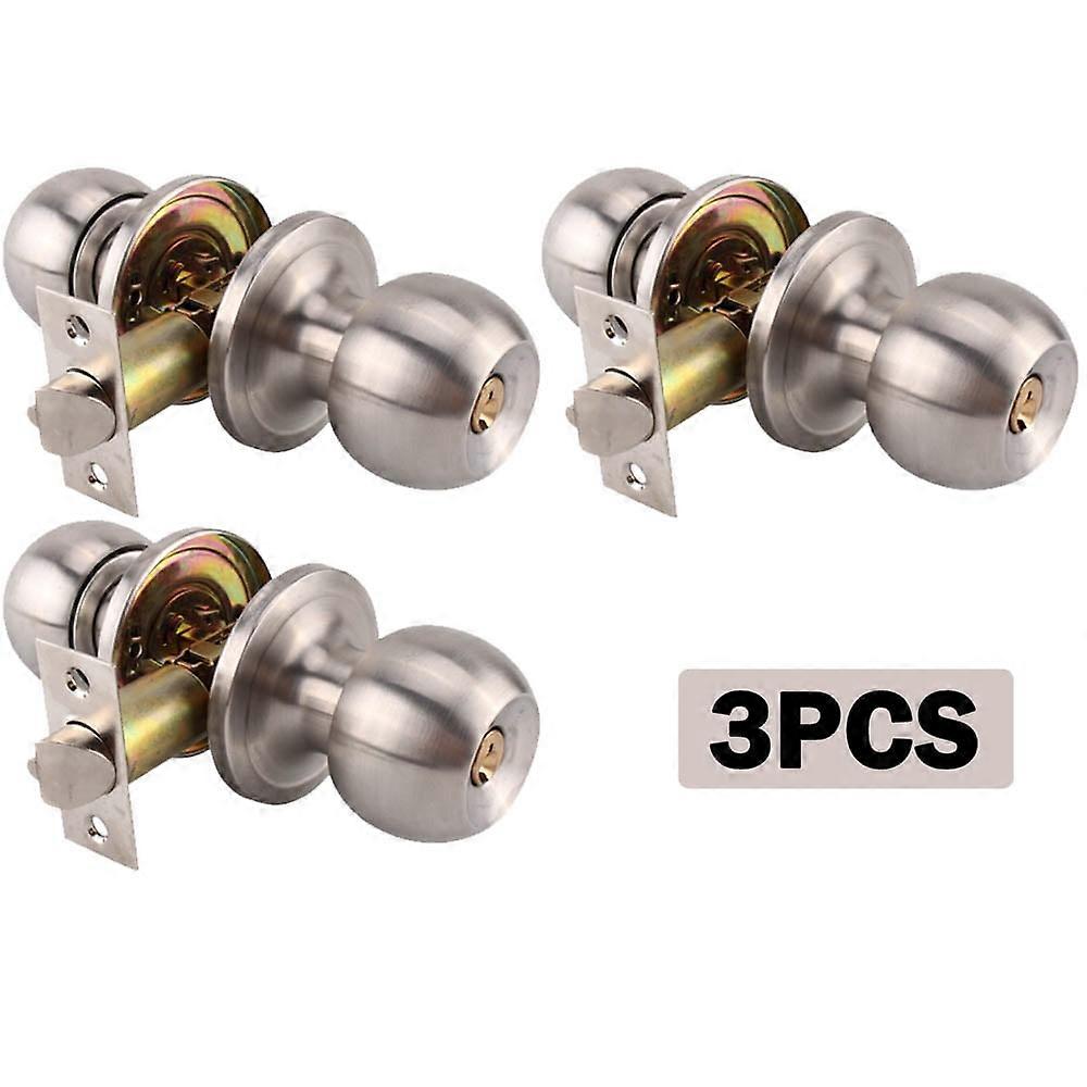 3 Pack Door Knob with Lock and Key, Bedroom Bathroom Door Knobs Interior Door Lock Satin Keyed Entry Doorknob Tuilp Door Handle Lock with Key