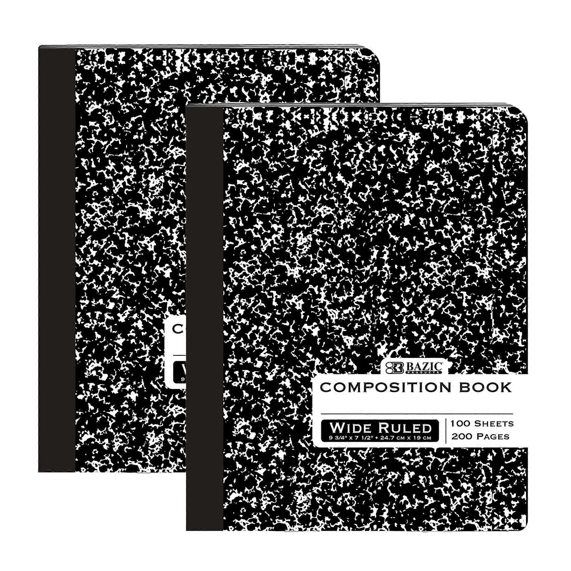 BAZIC Black Marble Composition Book Wide Ruled 100 Sheet, 2-Packs