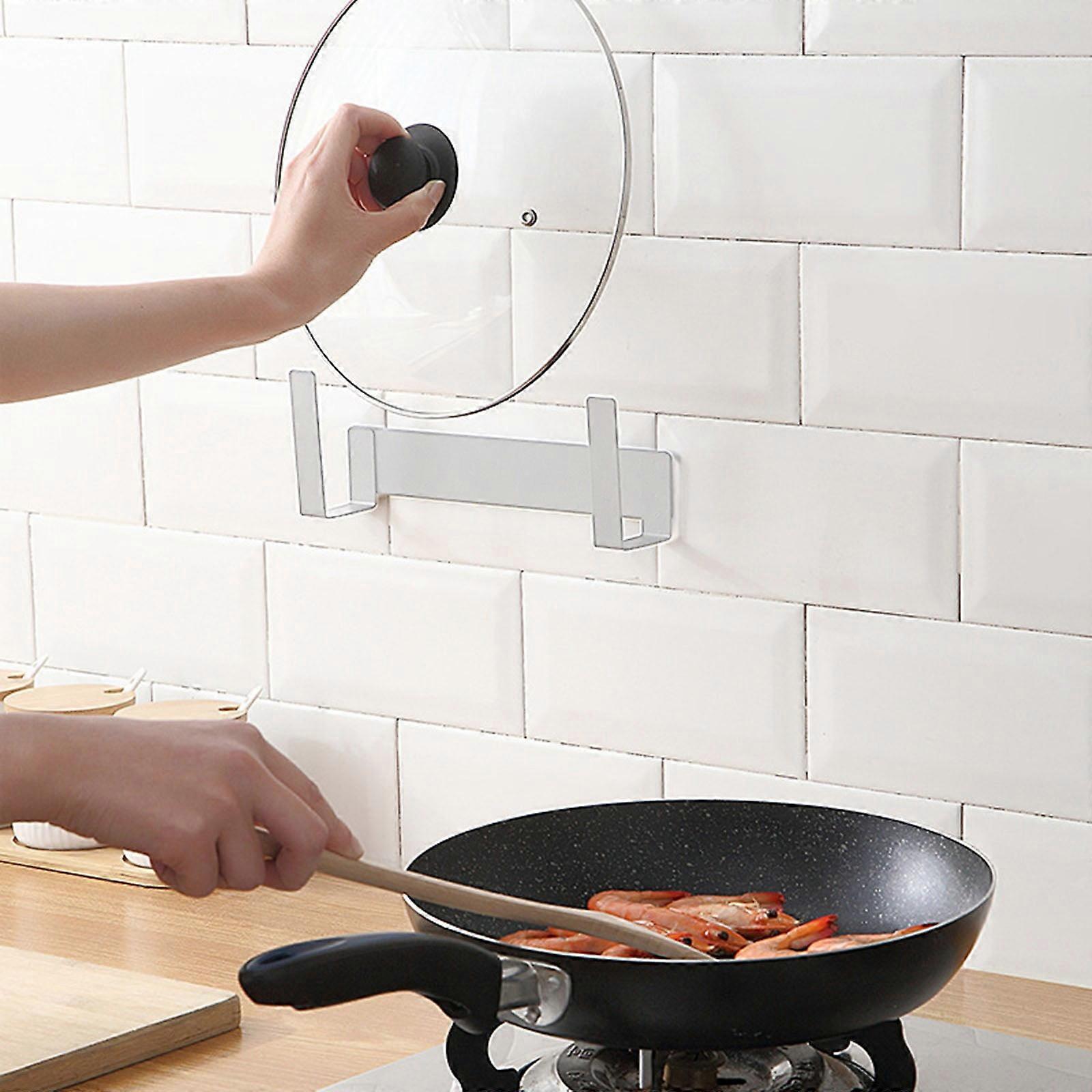 Lmueinov Hanging Pot Lid Organizer Pot Lid Rack Wall-Mounted Carbon Steel Kitchen Storage Pots Lid Rack Black storage and organization