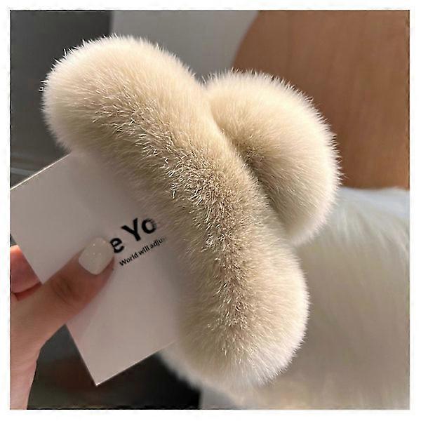 Soft Hair Clip Elegant Solid Color Faux Fur Plush Large Hair Clips Autumn Winter Milk Tea
