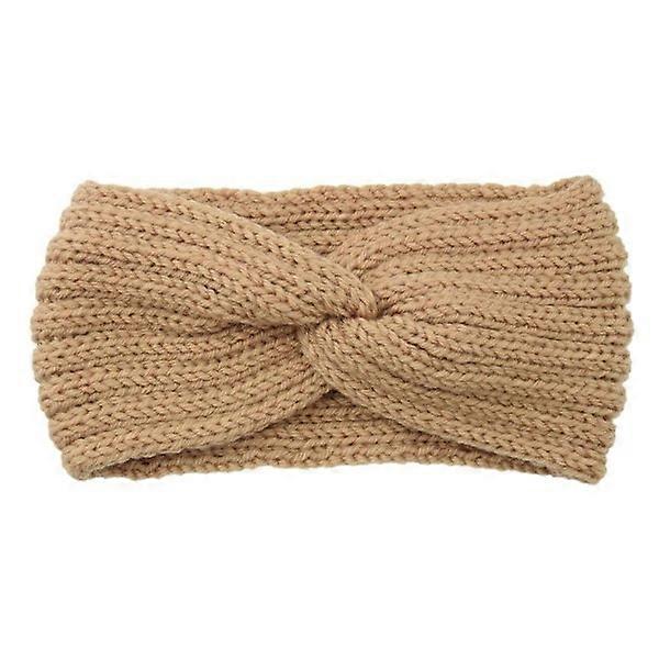Knitted headband with beautiful knot on the front boho winter autumn LightBrown one size