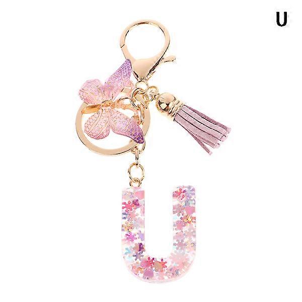 1 pc AZ letters keychain for women tassel butterfly pendant Ini U