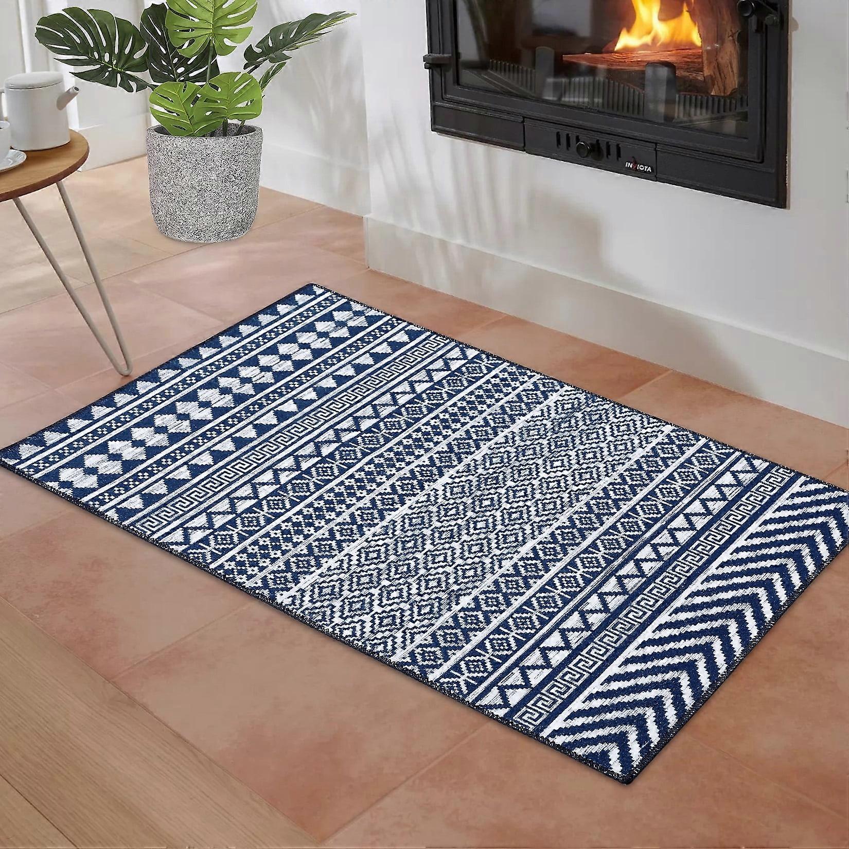 Garvee 3' x 5' Farmhouse Area Rug Indoor Machine Washable Moroccan Boho Trellis Tribal Geometric Stain Resistant Floor Carpet, Navy Blue