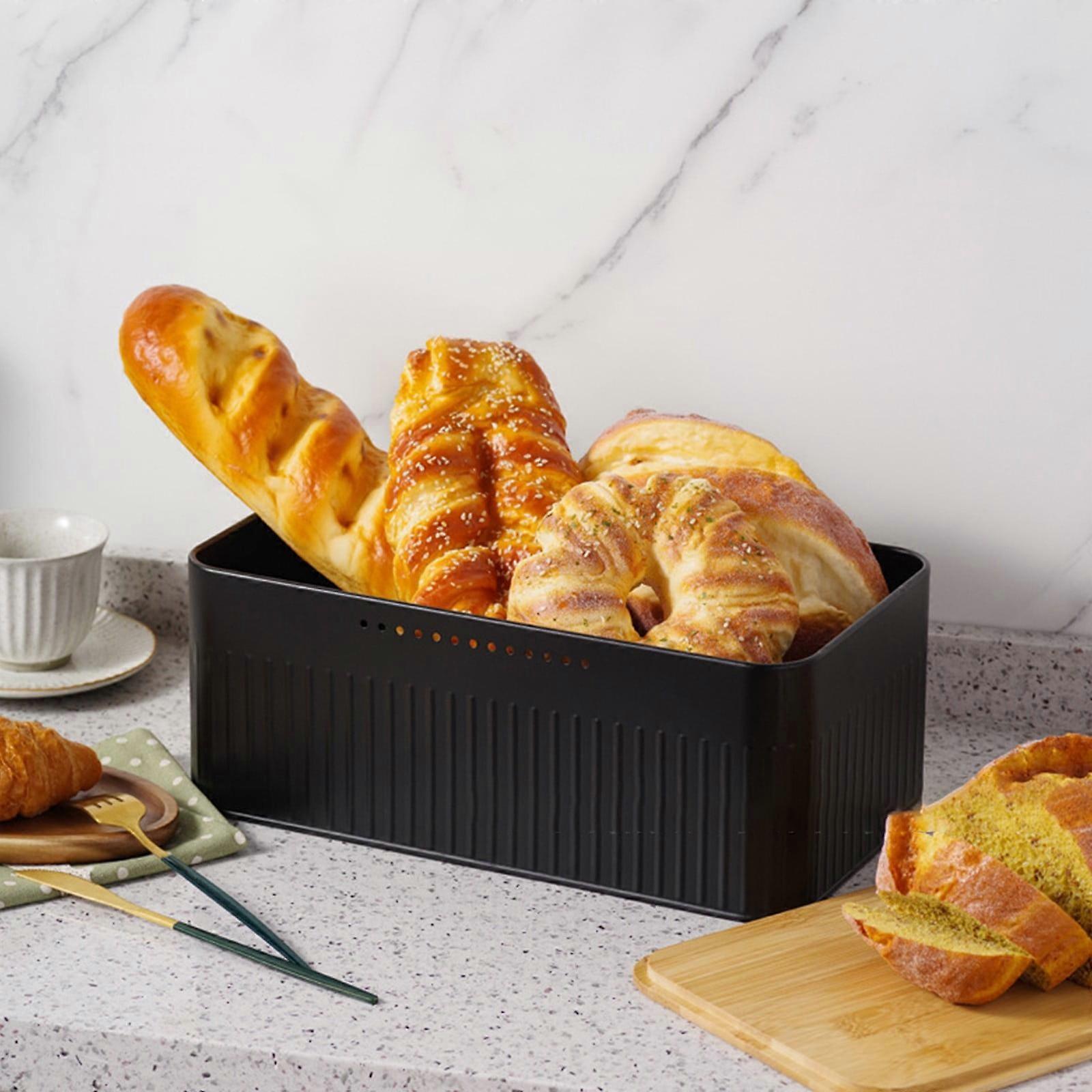 Kitchen Wooden Lid Baking Breads Storage Box Food Tightness Dusts Storage Boxes Excellent Quality Ceramic Material Feature: Quantity: 1Pcs Colour: Black Material: Iron Product size:33x18x13.5cm/12.99x7.08x5.31in Package size:35x20x16cm/13.77x7.87x6.29in Net weight:930g/2.05lb Gross weight:1259g/2.77lb Descrition: Versatile Storage: Our bread storage box is designed to conveniently store bread, bake bread, and other baked goods. With its spacious interior, you can easily organize and keep your favorite treats fresh. Premium Quality: Crafted from excellent quality iron, this bread storage box is built to last. Its sturdy construction ensures durability, while the wooden lid adds a touching of beautiful. Dusts proofing and Hygienic: The wooden lid of our bread storage box acts as a barrier against dusts, keeping your bread and pastries safe and clean. Stylish Design: The striped pattern on the body of the box adds a modern and sleek touching to your kitchen decor. The design is not merely aesthetically pleasing but also provides a non slip face, ensuring stability and take precautions accidental slippage. Practical and Functional: Our bread storage box features a matte non slip bottom, take precautions it from sliding around on your countertop. In addition, this storage box is available in two colours, you can choose take precautions suitable colour according to your preference. Package Content: 1x Beverage Organiser RXIRUCGD Bread Box with Wooden Lid for Kitchen Countertop, Tightness Bread Storage Container for Homemade Bread Material: the products are made of safe, healthy and durable materials, which can be used with confidence. Best Gift: it is a perfect gift for families, boys or girls or friends or Children or kids Occasion: This product has many uses, and it is suitable for living room, bedroom, bathroom, kitchen, office, Mother's Day, Father's Day, Halloween, Christmas, Independence Day, birthday party, Valentine's Day, party, school Warm Tips: Please check the size information chart before ordering the product. If you have any questions, please feel free to contact us. We will provide you with a satisfactory solution.
