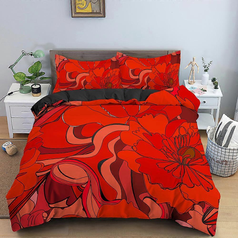14-Red Rose King Queen Duvet Cover Valentine's Day Wedding Couple Flower Bedding Set 2/3Pcs Love Heart Floral Quilt Cover