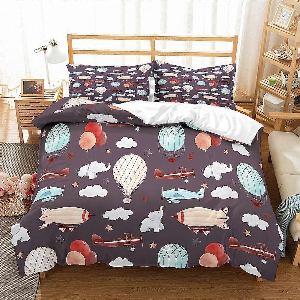 8-Hand Painted Style Balloon Duvet Cover - Floating Hot Air Balloons with Clouds & Moon Print, Available in Twin and King Sizes