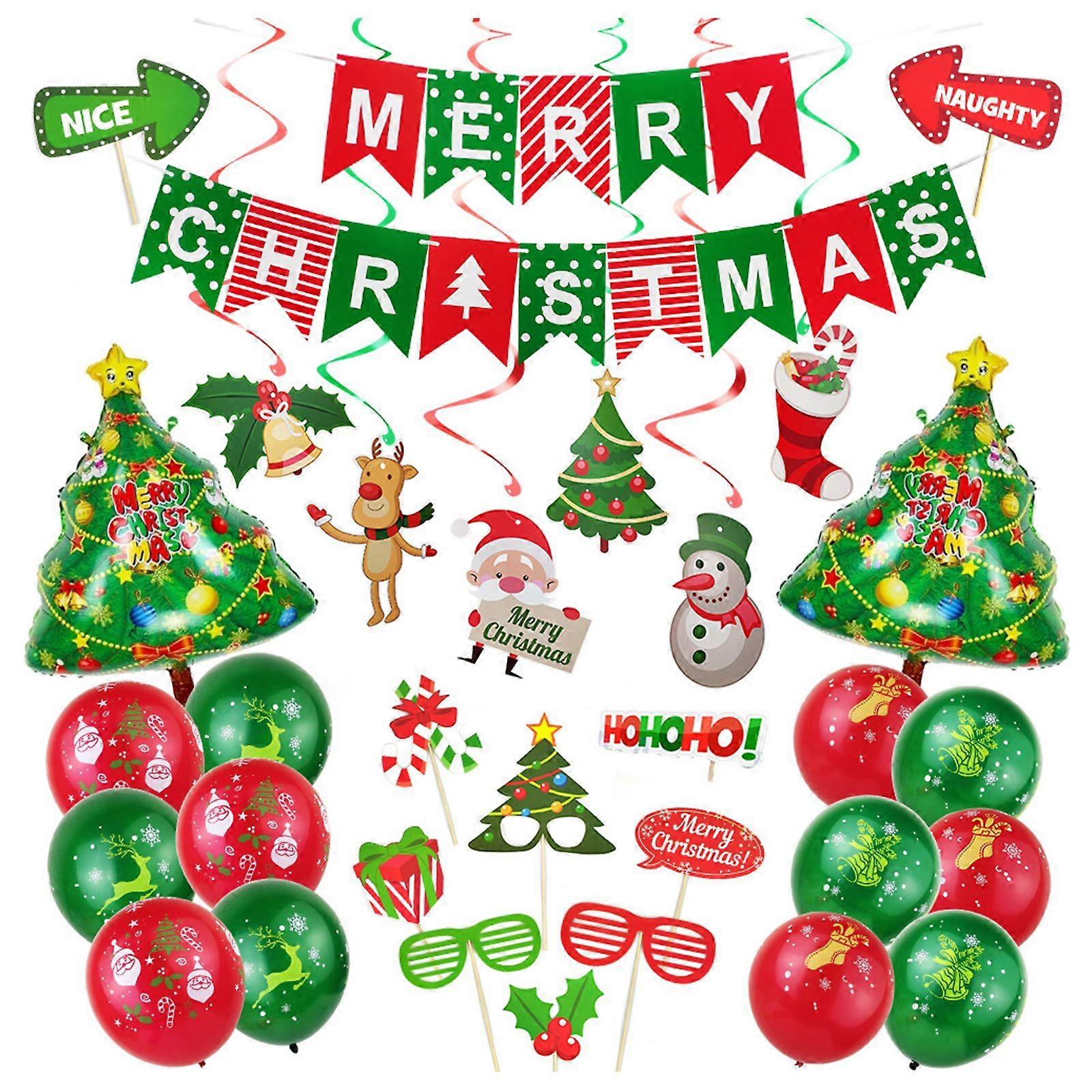 Merry Christmas Foil Latex Plain Balloons Red Green Xmas Foil Banner Party Decor NEW
