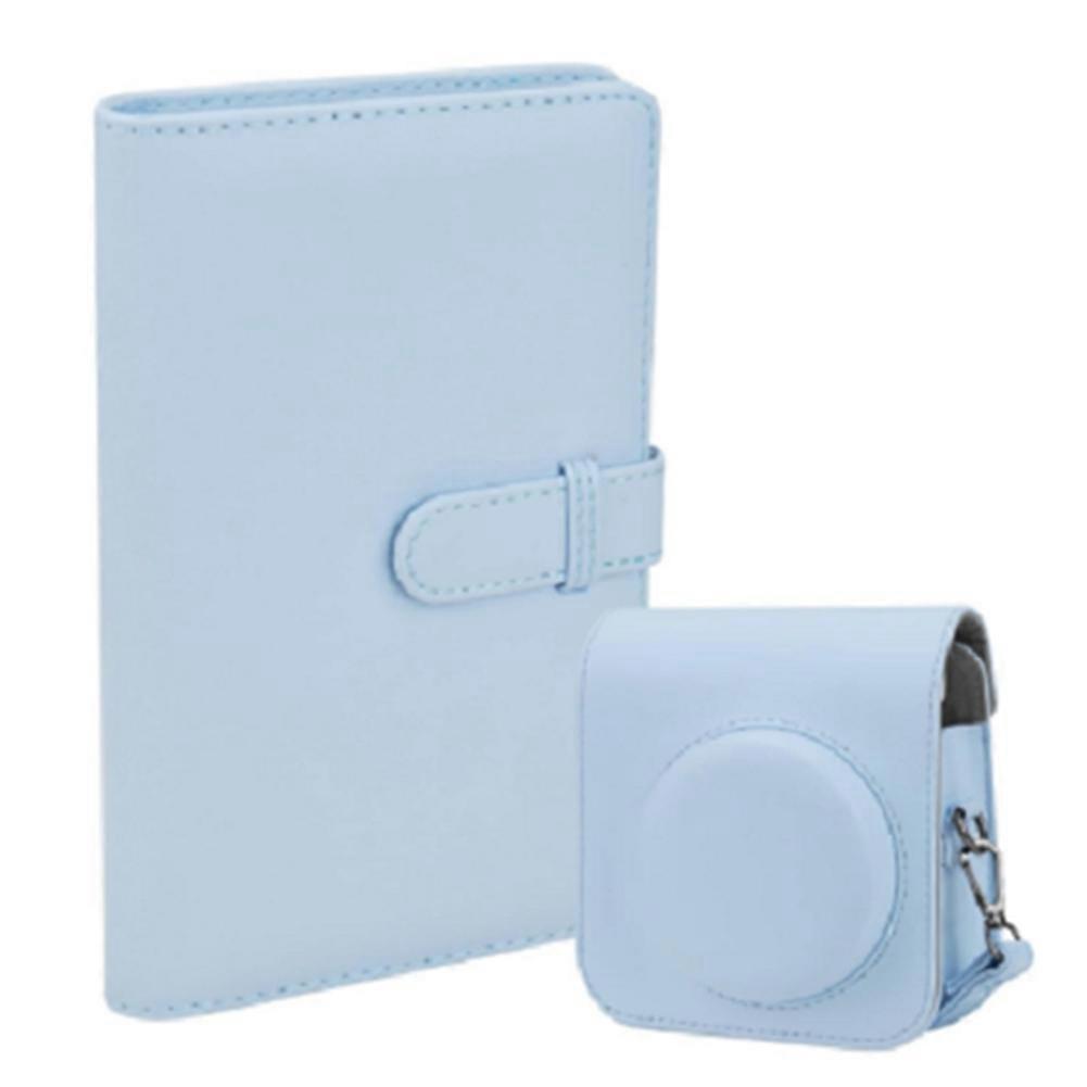 Perfect for Fujifilm: Designed specifically for Fujifilm Instax Mini 12, 11, 9, and 8 models, this case ensures a snug fit, protecting your camera from dust and scratches while providing easy access to buttons and ports. High-Quality Material: Crafted from premium PU leather, the case is not only durable but also environmentally friendly. The soft interior lining offers additional protection against scratches, ensuring your camera remains in pristine condition. Thoughtfully Designed for Convenience: The case features a detachable flip cover for easy camera operation, a rear pocket for temporary photo storage, and an adjustable shoulder strap for comfortable carrying, making it ideal for travel and everyday use. Complete Package: Each purchase includes the camera case, a removable strap for easy carrying, and a matching mini photo album with 108 pockets 3 Inch to safely store and organize your precious photographic memories. Applicable: 3-inch photos/movie tickets/business cards, etc. Applicable: for Instax Mini 12/11/9/8 Colour:B:Light Blue Material:PU Package Contents: 1 x Camera Protective Case 1 x Album for Fujifilm