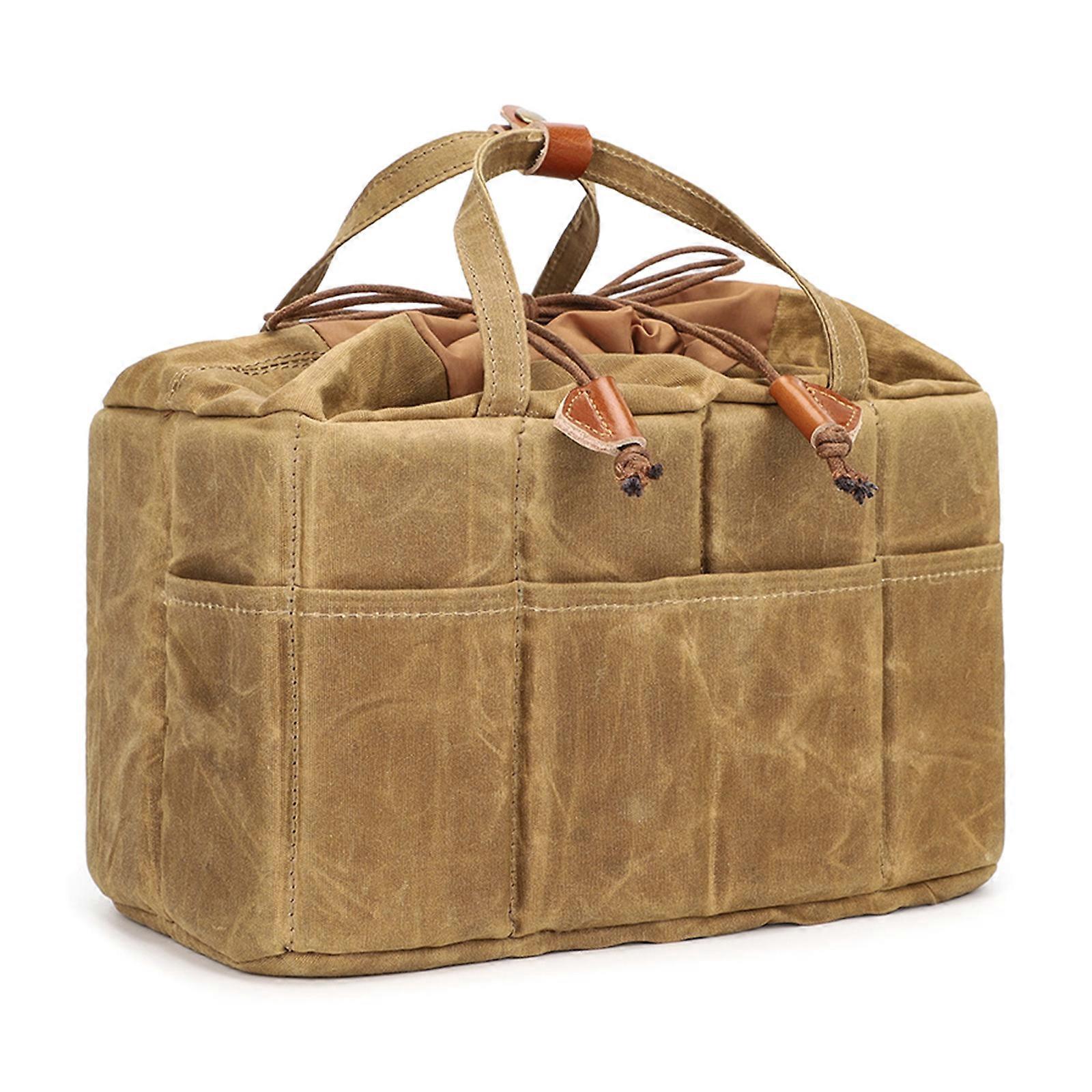 Canvas DSLR Camera Lens Insert Bag Case Offering Water Resistant Design and Scratch Prevention for Secure Storage Khaki