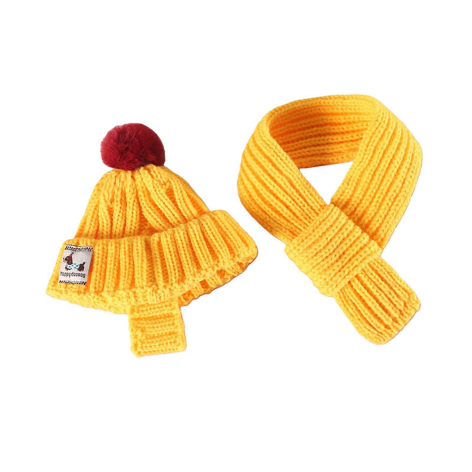 Dog Winter Hat Scarf Set,Knitted Pet Hat New Year Winter Warm Cap Dog Costumes Accessories Neck Ear Warmer for Dog Cats S Yellow