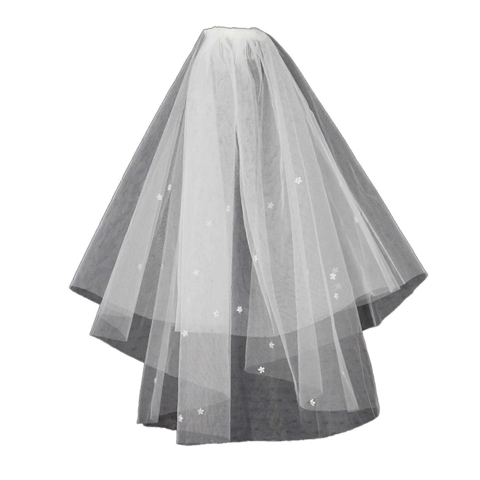 Wedding Veil with Comb Cut Edge Hair Accessories for Bride 2 Tier Sheer Tulle Resin Flower Decoration Illusion Veils Multicolor