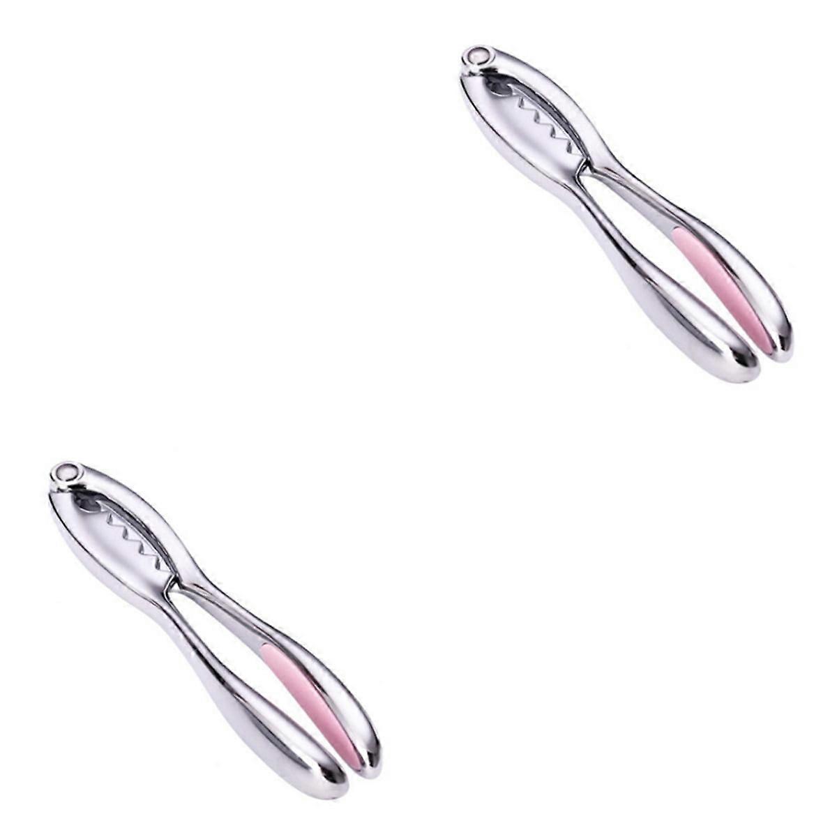 2 pcs Kitchen Stainless Steel Crab Clamp Pliers Kitchen Gadget for Home Restaurant (Pink + Silver)