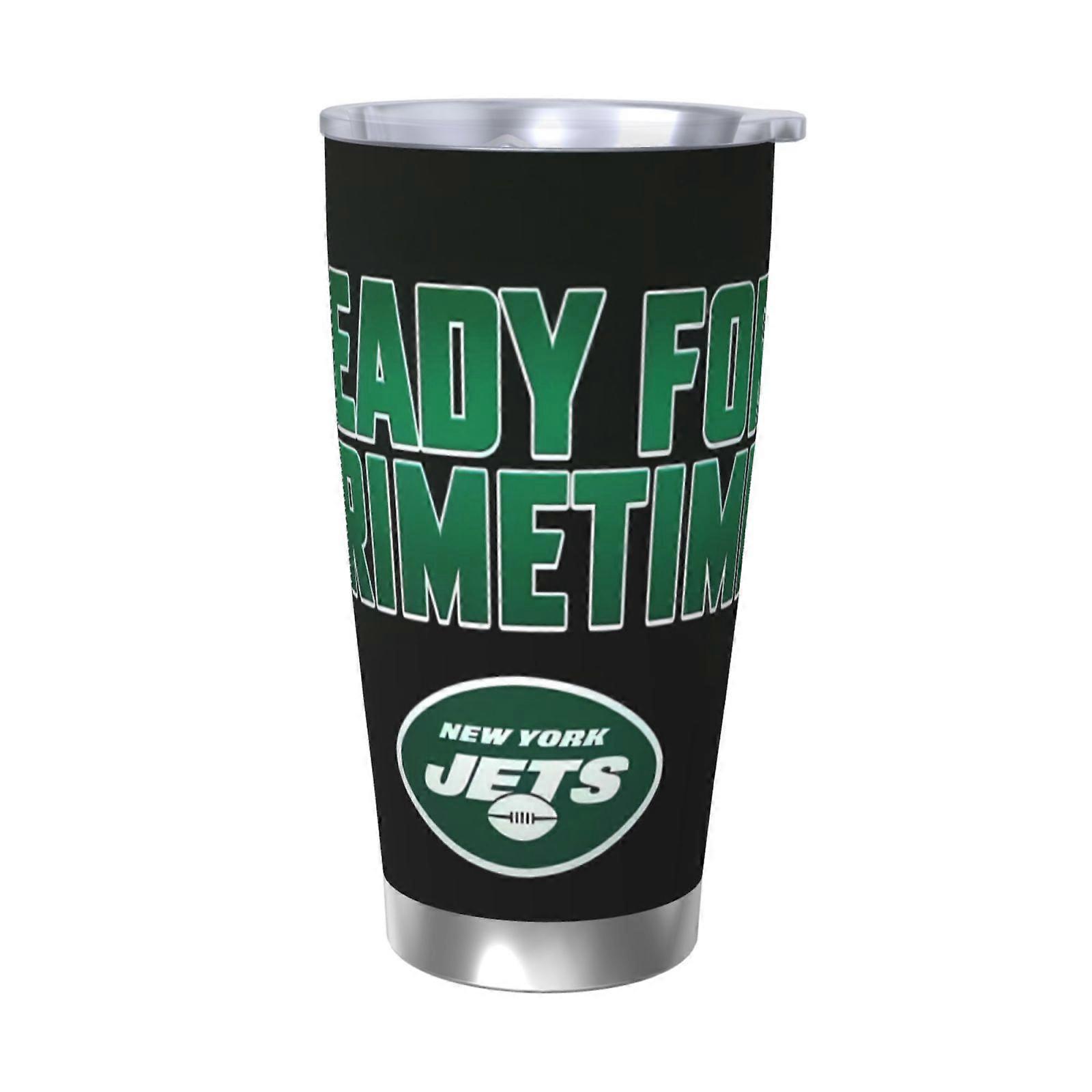 Jets Football Team Theme 20oz Stainless Steel Thermos Cup with Lid & Straw - Compatible with Car Cup Holders, Hot & Cold Drinks, Coffee, Sports,