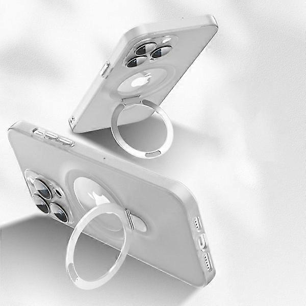 Transparent MagSafe case compatible with iPhone 15 Pro Max, matte PC shockproof thin cover with magnetic ring holder