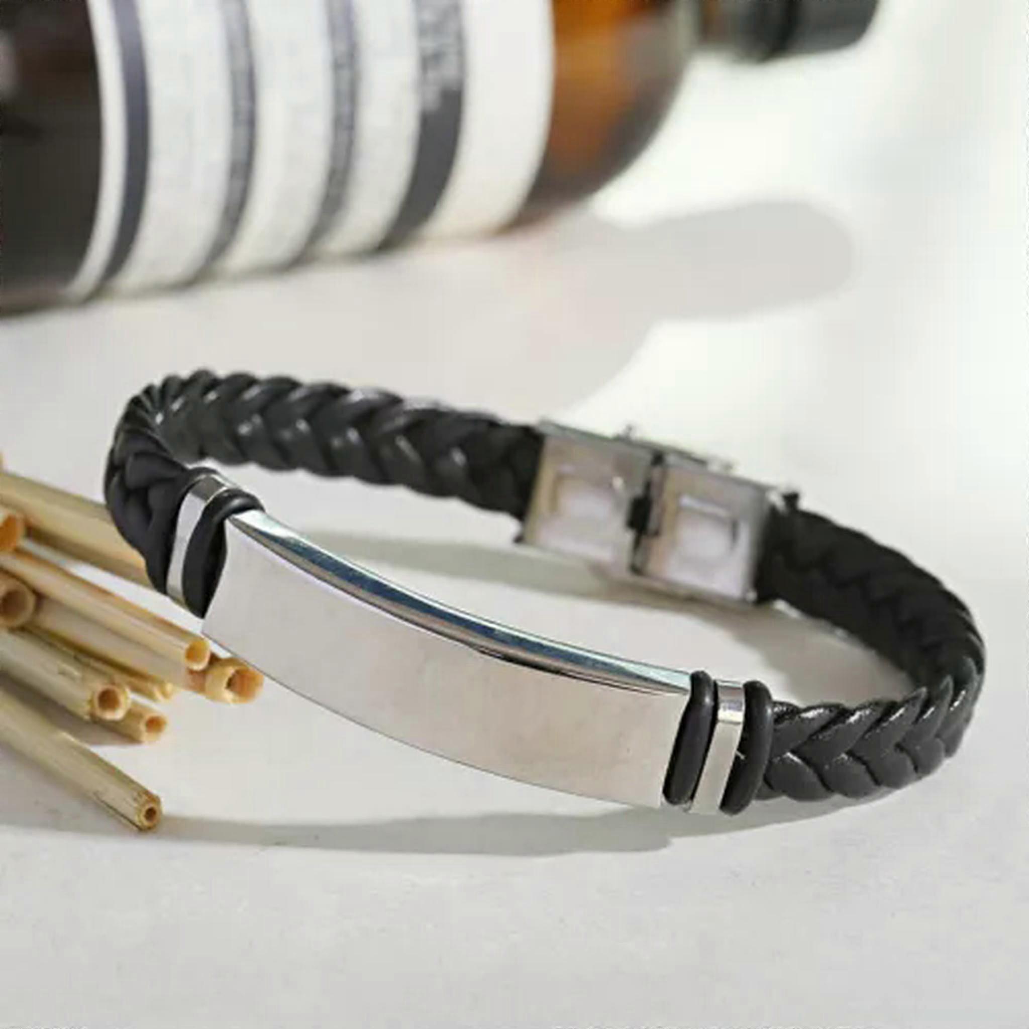 RSAMD Fashion Men Jewelry Natural Stone Genuine Leather Bracelet Black Stainless Steel-Style 12