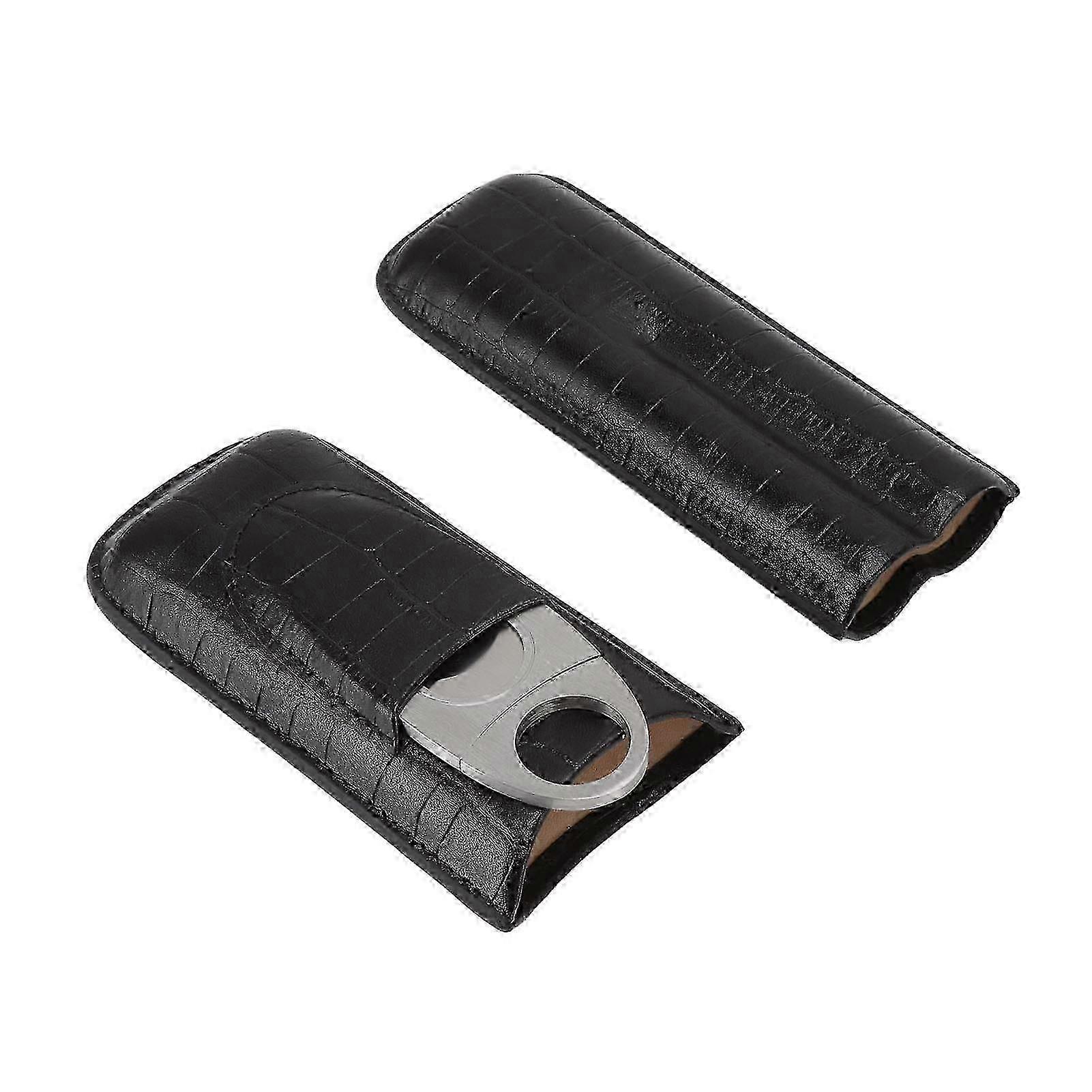 Genuine Leather Travel Cigar Case with Built-In Cutter - Perfect Two-Finger Holder & Gift for Him