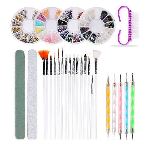 Nail Painting Brush Dotting Pen Nail File Rhinestone Dust Brush Manicure Tool Set
