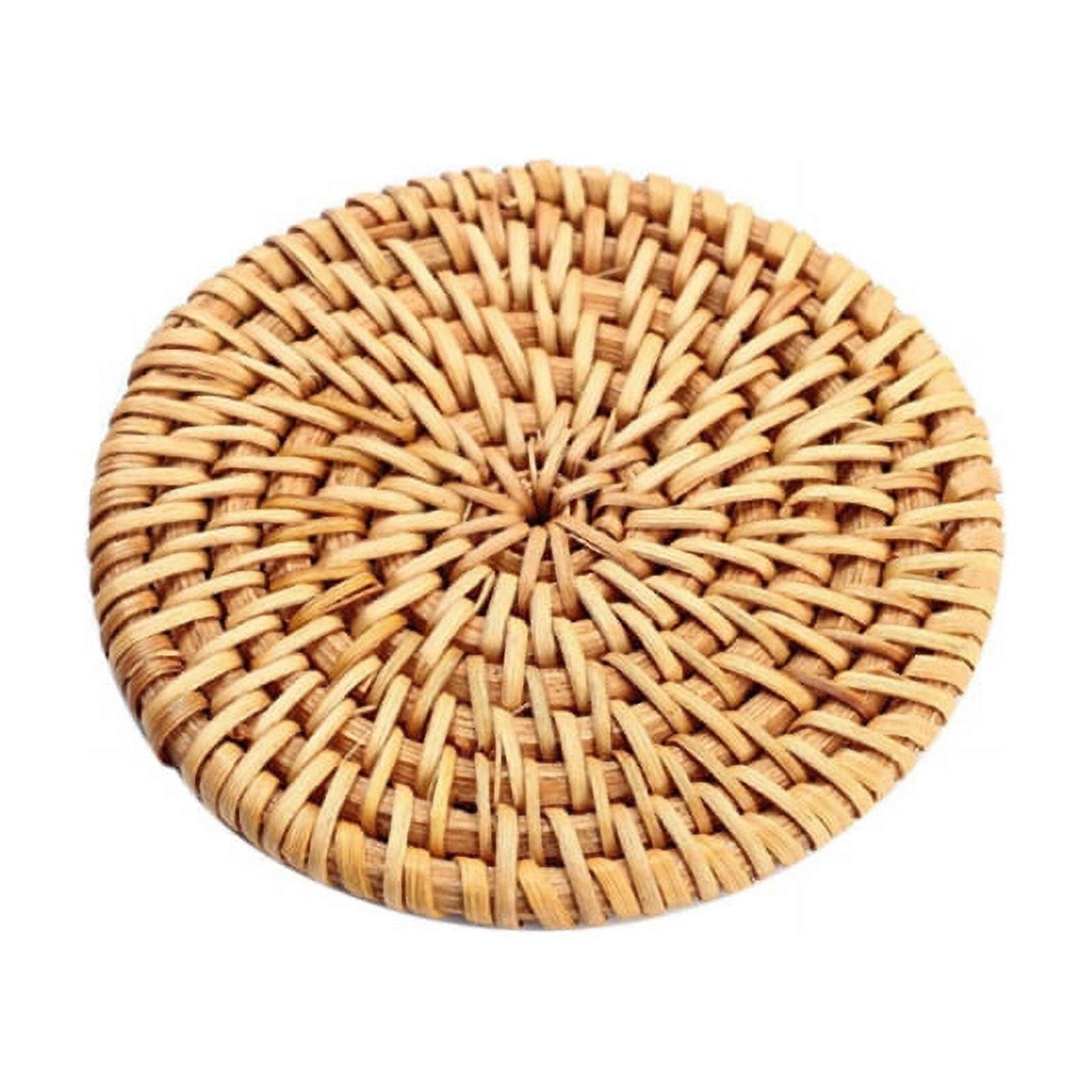 Product parameters: Product size: diameter is 8cm, 10cm, 13cm, 16cm thickness 1cm Material: Rattan Packing: opp bag Quantity: 1pcs Function: thermal insulation and anti-scalding Features: 1. High water absorption rate can also be used as a teapot cushion 2. Absolutely environmentally friendly, insulated and non-slip 3. Easy to clean, no residual stains 4. Suitable for various occasions, such as kitchen, party Package: coaster * 4 These durable trivets are made with natural rattan by hand woven,ideal for larger vessels and hot dishes/pans/pots and more. Pretty rattan golden color with natural fragrance,We don't use machine to manufacture these trivets in bulk. These trivets are not only trivet,they also are table protector, spoon rest, pot holder, and trivet.