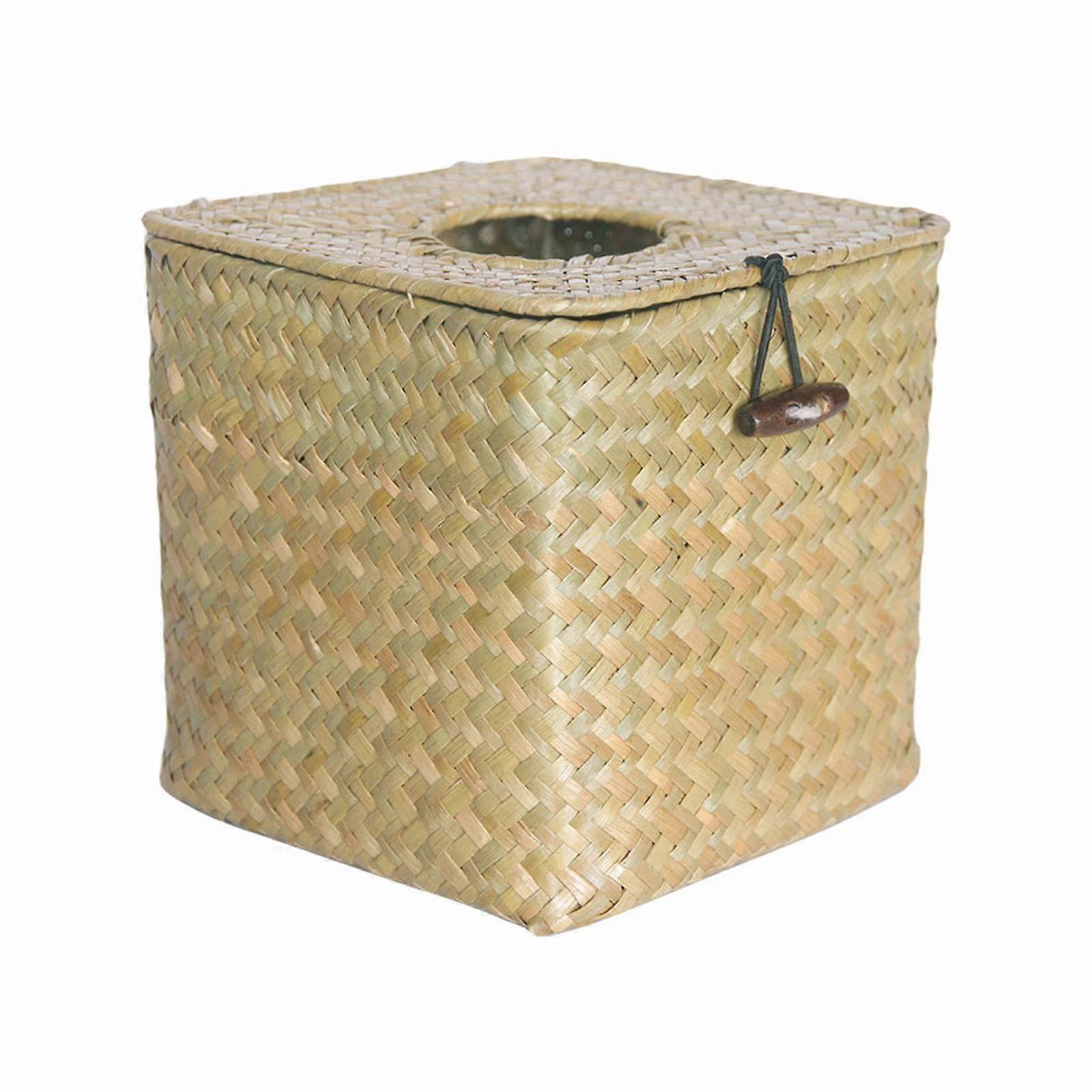 Leott Square Woven Tissue Box Holder, Decorative Napkin Dispenser Compatible with Khaki Tissue Box – 1 Pack