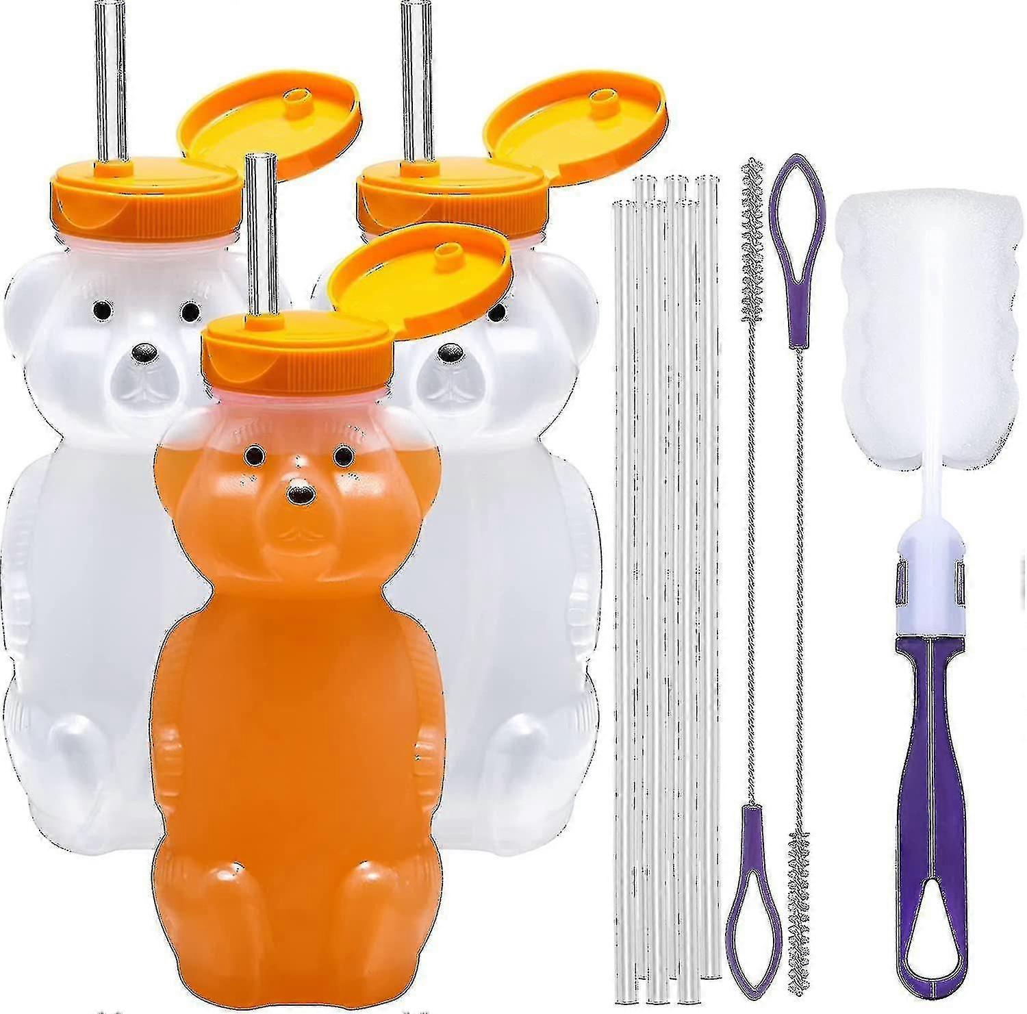 Honey Bear Straw Cup with Long Straws (3-Pack) - Squeezable Assistive Drink Container for Therapy & Special Needs, Leakproof Lid_zhida6