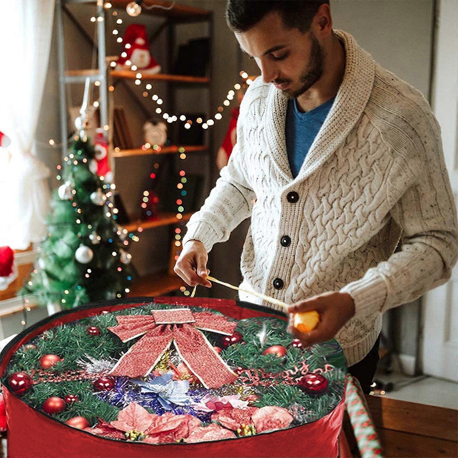 Txmfgh Christmas Wreath Storage Bag - Garland Container with Clear Window, Tear Proof PE, Red & Green, compatible with artificial wreaths