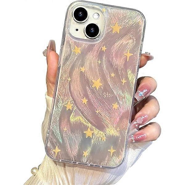 Holographic Fade Star Hard Case, Slim Shockproof PC Design Compatible with iPhone 15 Plus for Women Girls