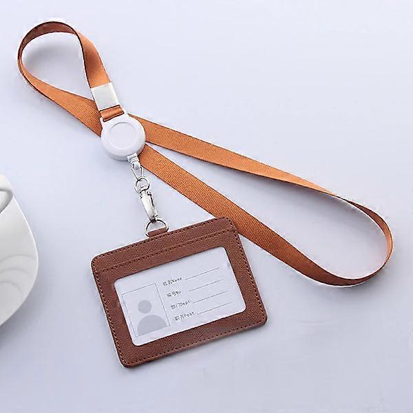 Retractable Lanyards ID Badge Holder Leather Bank Bus Pass Case Cover Men Women Bank Credit Card Holder Strap Card Holder brown(.1488)