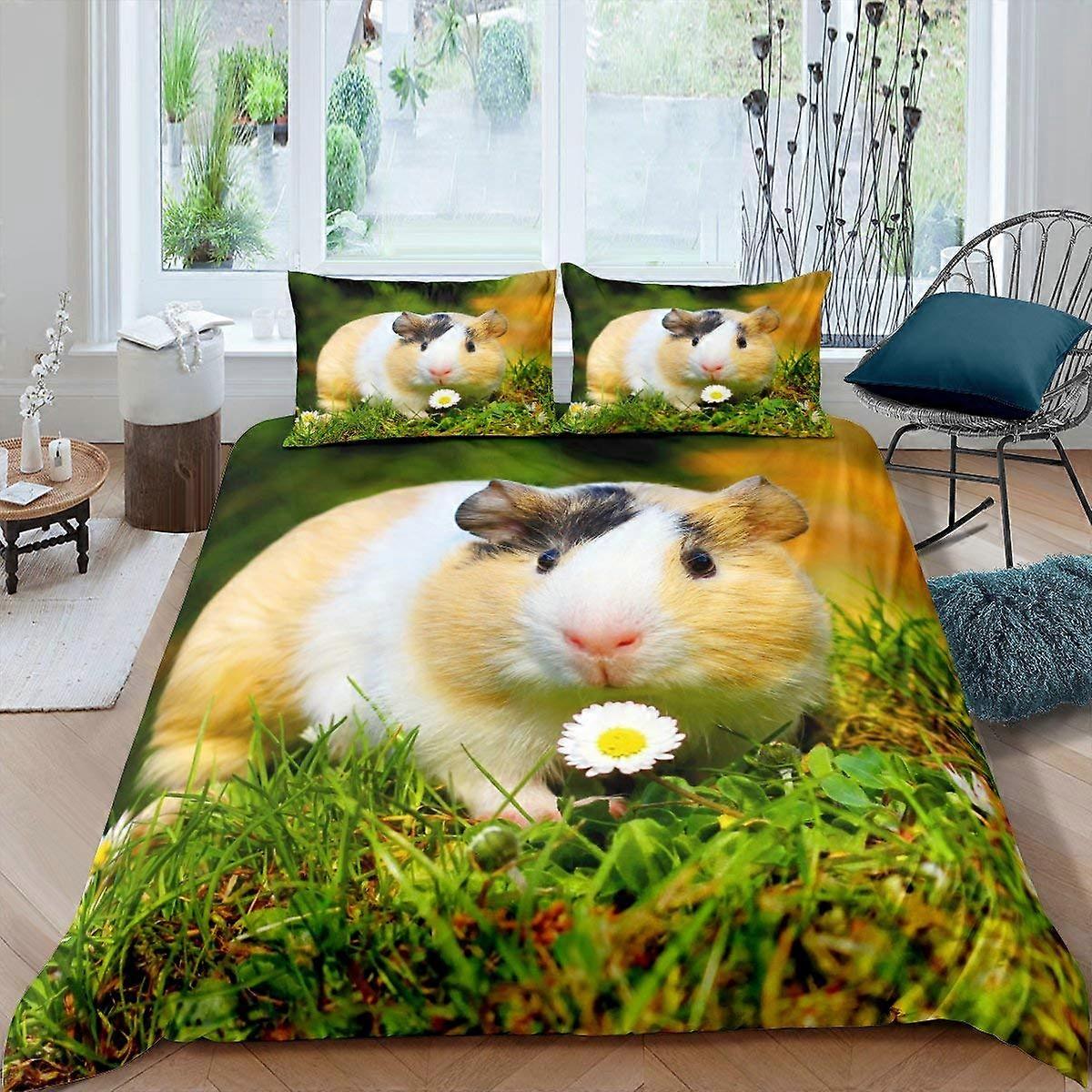 5-Guinea Pig Duvet Cover King Queen Kids Teens Boys Girls Cute Cartoon Hamster Rodents Bedding Set White Quilt Cover