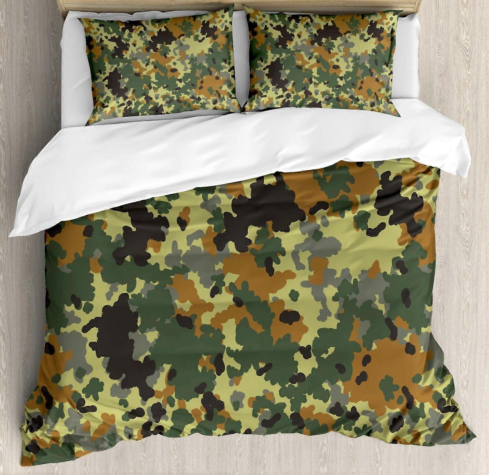14-Camouflage Duvet Cover Set, Camouflage Concept Concealment Artifice Hide Force Uniform Pattern Fashion, 3 Piece Bedding Set