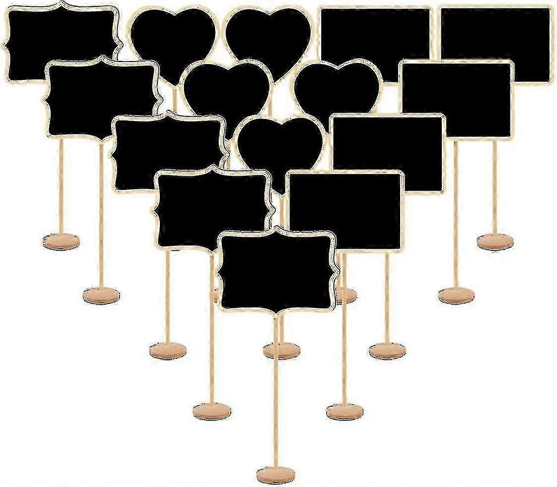 15 Mini Blackboard Signs with Stands, Wooden Food Labels, Mini Message Boards