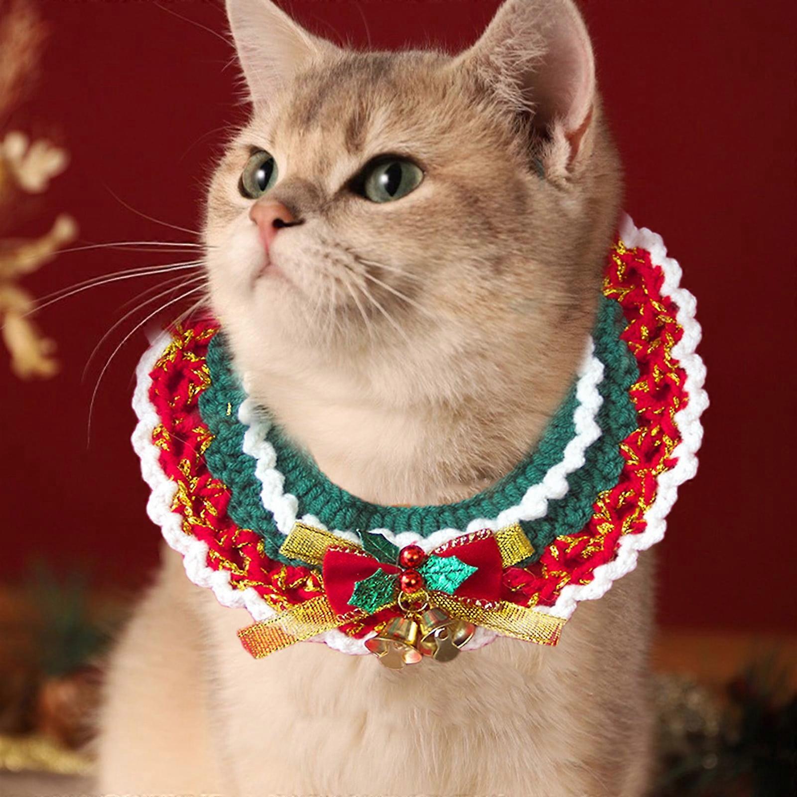 1950s Christmas Pet Collars, Hand-Woven Crochet Bib Kitten Necklace Scarf, Adjustable Cat Collars, Holiday Costume for Small Medium Cats Dogs