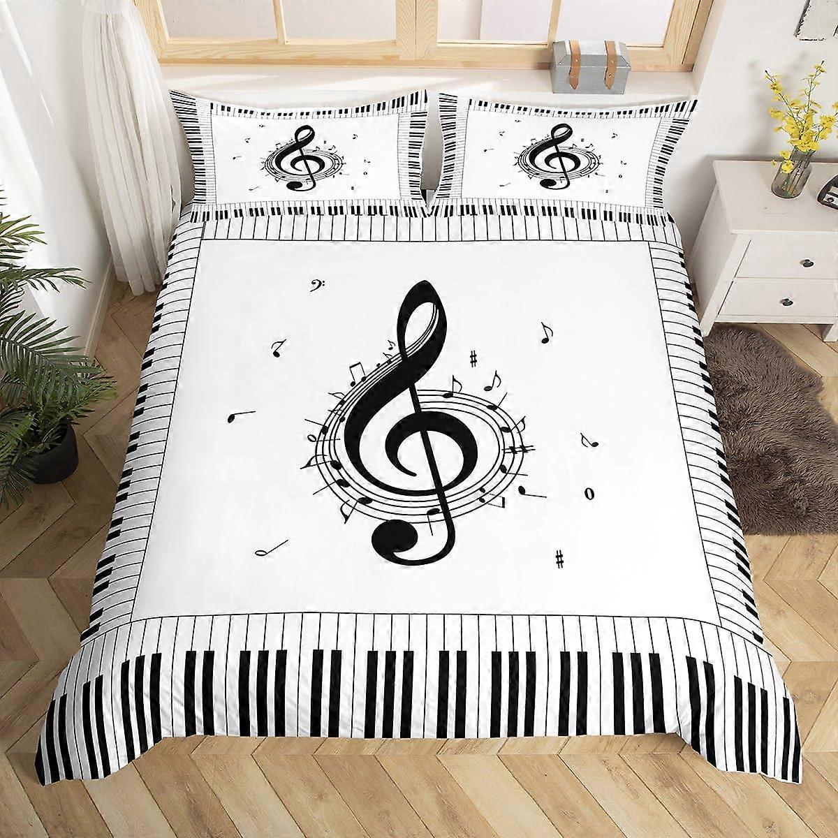 17-Piano Keyboard Duvet Cover Note Clef Staff Music Theme Bedding Set Microfiber Melody Music Geometric Quilt Cover Twin King Size