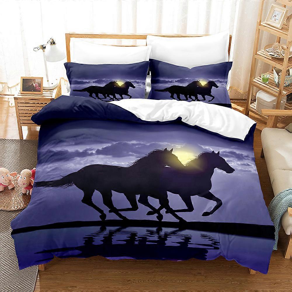 12-Horse Duvet Cover For Kids Teen Adult, Cool Watercolor Horse Racing Comforter Cover Set 2 Cushion Covers, Multicolor