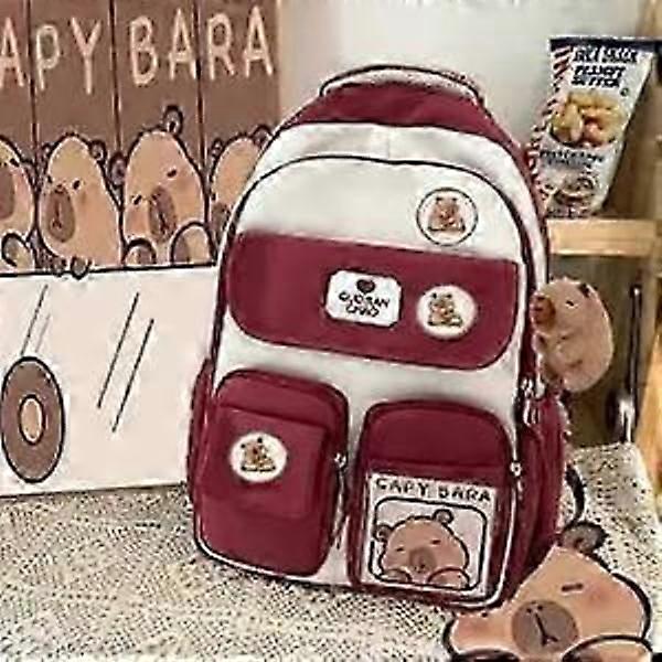 School Bag Brown 2024 Capybara Ridge Large Backpack For Boys And Girls, Brand Card Red Backpack