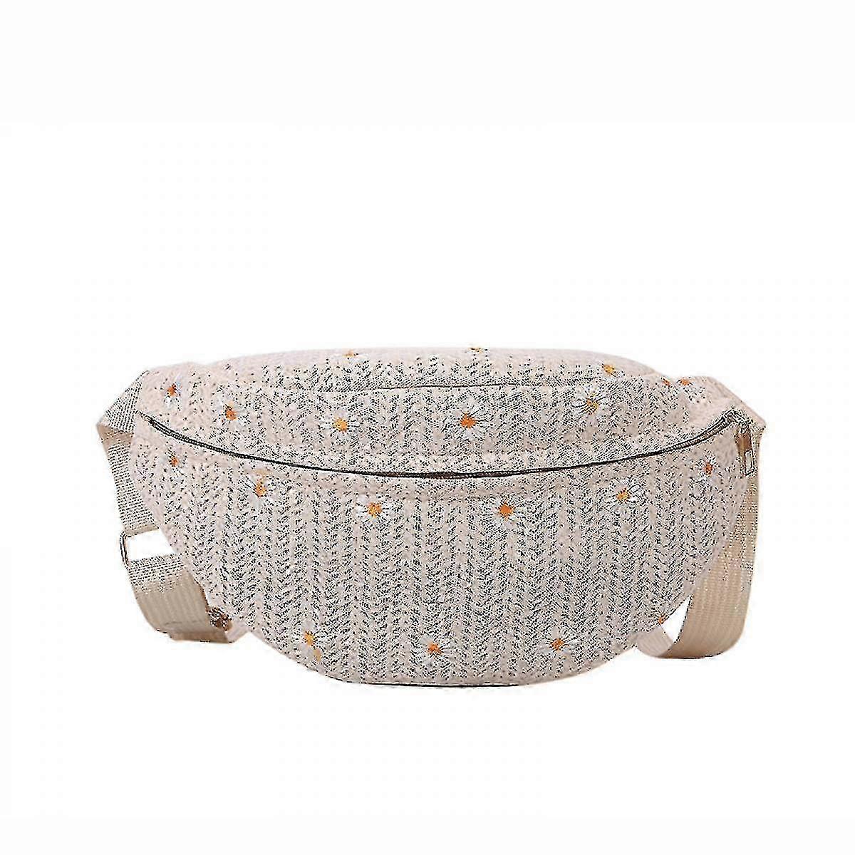 White daisy print waist bag, PU leather, lightweight crossbody bag for women.